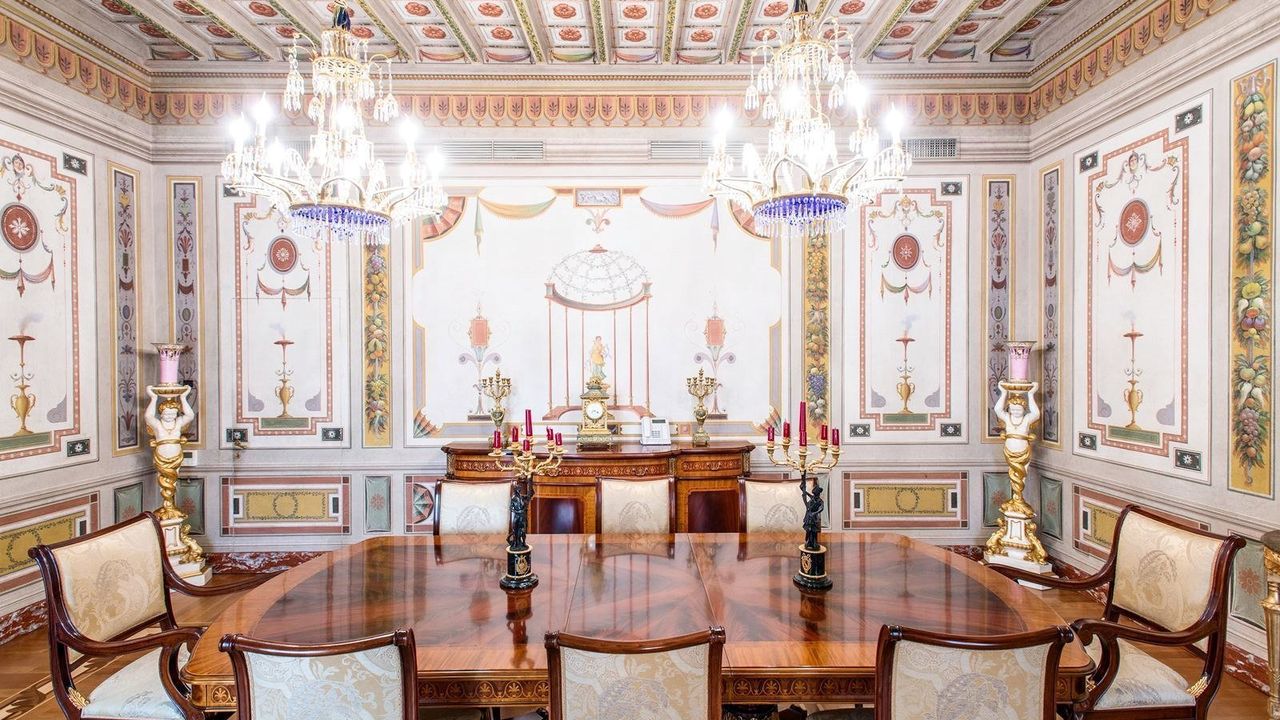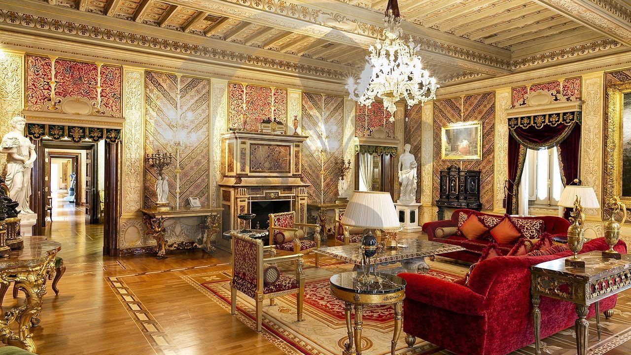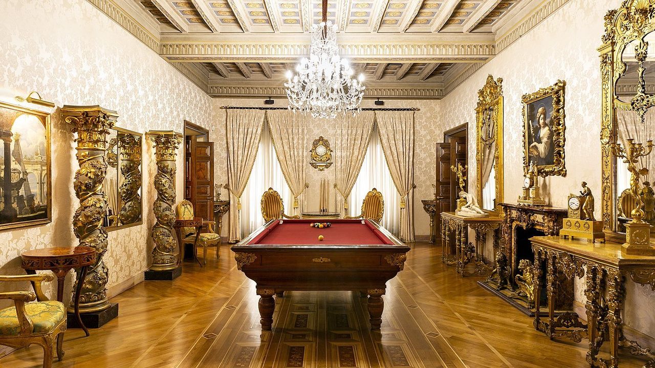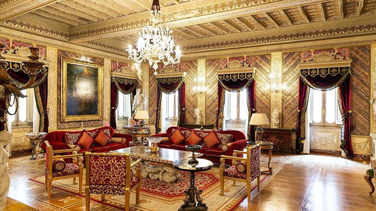 Пентхаус занимает весь последний этаж здания, к которому можно подняться по монументальной лестнице в большом пространстве высокого представительства, с великолепным видом на деревья во внутреннем дворе. Вход с широким кессонированным коридором, достигает большой зал с шестью окнами, центральным камином, кессонными потолками, изысканно украшенными стены покрытые драгоценными шелками и лепниной придают залу королевский блеск. Большой зал связан с гостиной , также украшенной и с камином, где на данный момент установлен бильярдный стол. Великолепная столовая, украшенная настенными росписями и кессонированными потолками заключает область высокого представительства. Столовая профессионально оборудованная для важных приемов, кухня оснащена лучшими приборами. Основная спальная зона находится в противоположном крыле салонов и включает в себя: кабинет с камином, тренажерный зал, главную спальню, большую ванную комнату с джакузи и большой душевой кабиной, вестибюль, в отдельной зоне две спальные комнаты с двуспальными кроватями, каждая с собственным гардеробом и ванной комнатой. В более отдельной позиции, еще один кабинет с гостевой ванной.