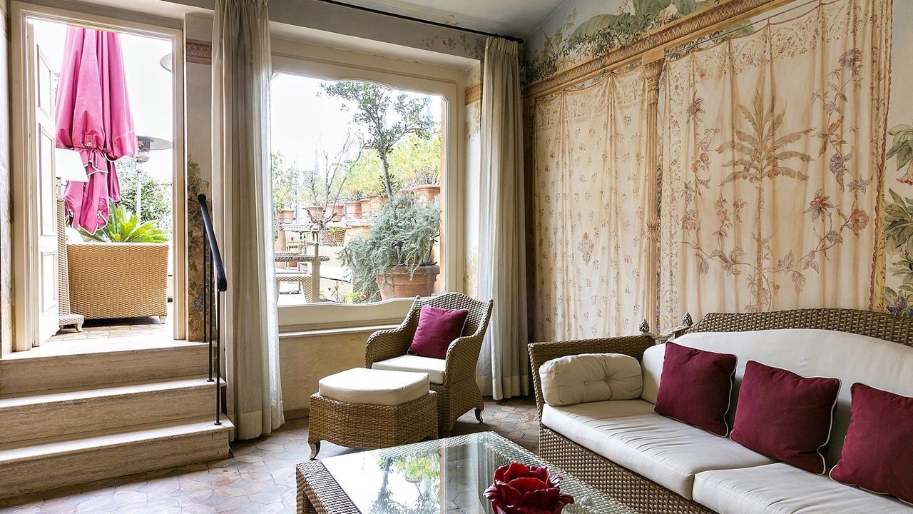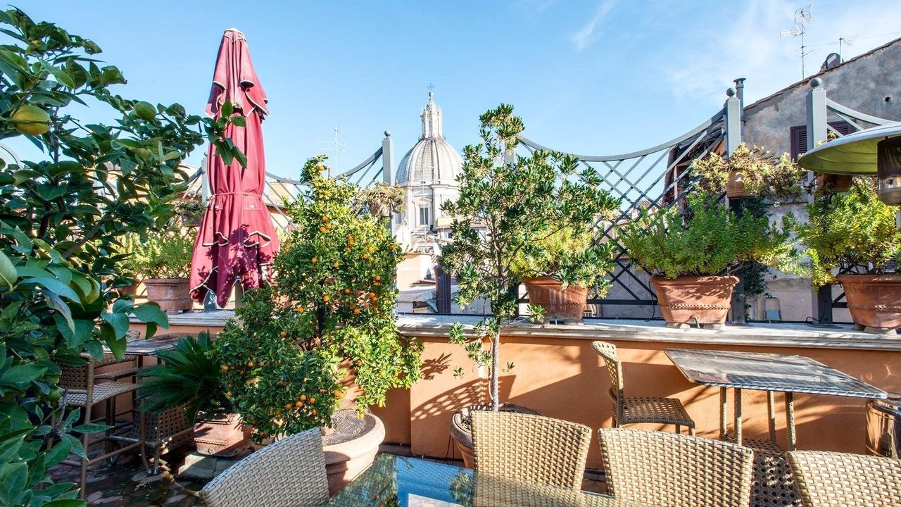 В пентхаусе есть большая терраса с диванами, креслами и большим столом, из окон представляется вид на купол Сант-Агнесе в Агоне-дель-Борромини. На крыше находится также терраса с видом на 360 градусов. Продажа включает в себя три парковочных места, квартира консьержа, магазин c двумя витринами на стороне улицы.