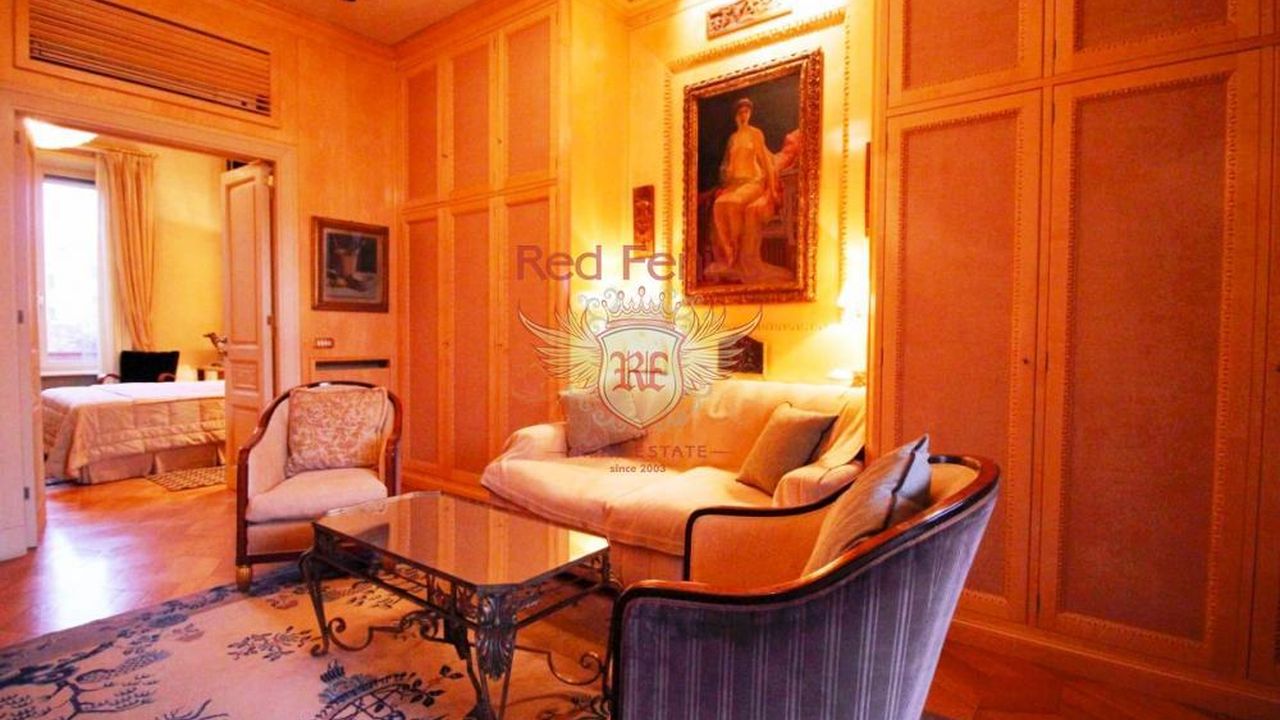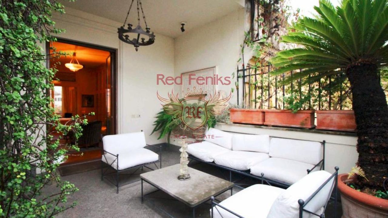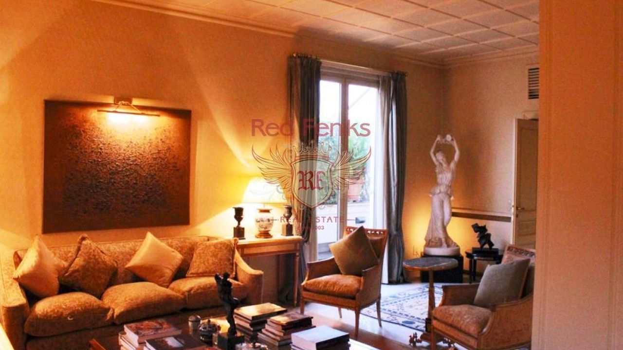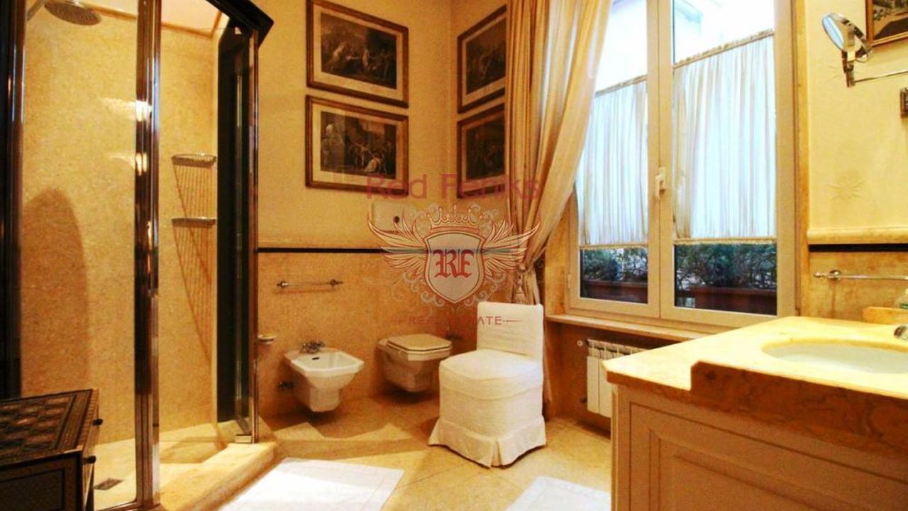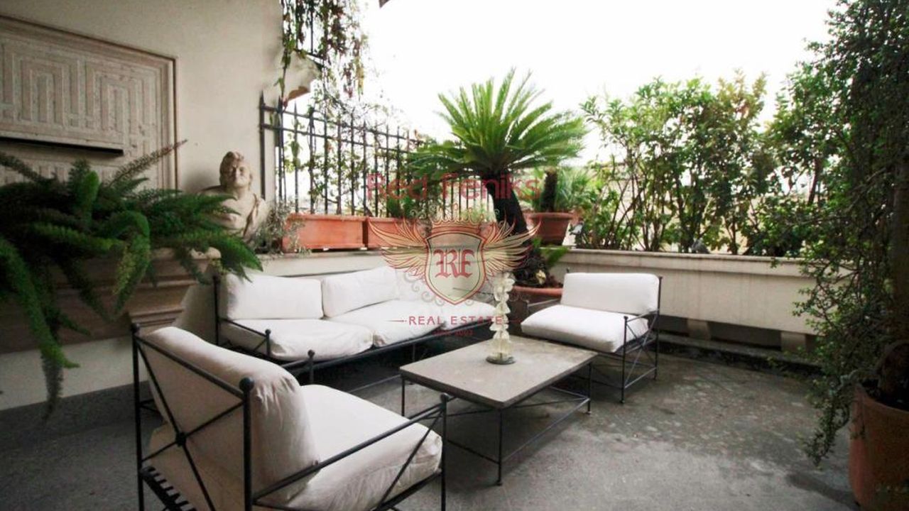 В непосредственной близости от площади Барберини, в престижном здании с лифтом и услугами консьержа, предлагается к продаже прекрасная квартира, 308 кв.м., состоящая из: большой прихожой со шкафами, гостиной, кабинета, столовой, кухни, 2 ванных комнат, спальни и 2-х террас. Вид из спален направлен на сады XVI века Палаццо Барберини, Мраморные и паркетные полы, высокие потолки 3,70 м с лепниной, очень хорошее состояние.