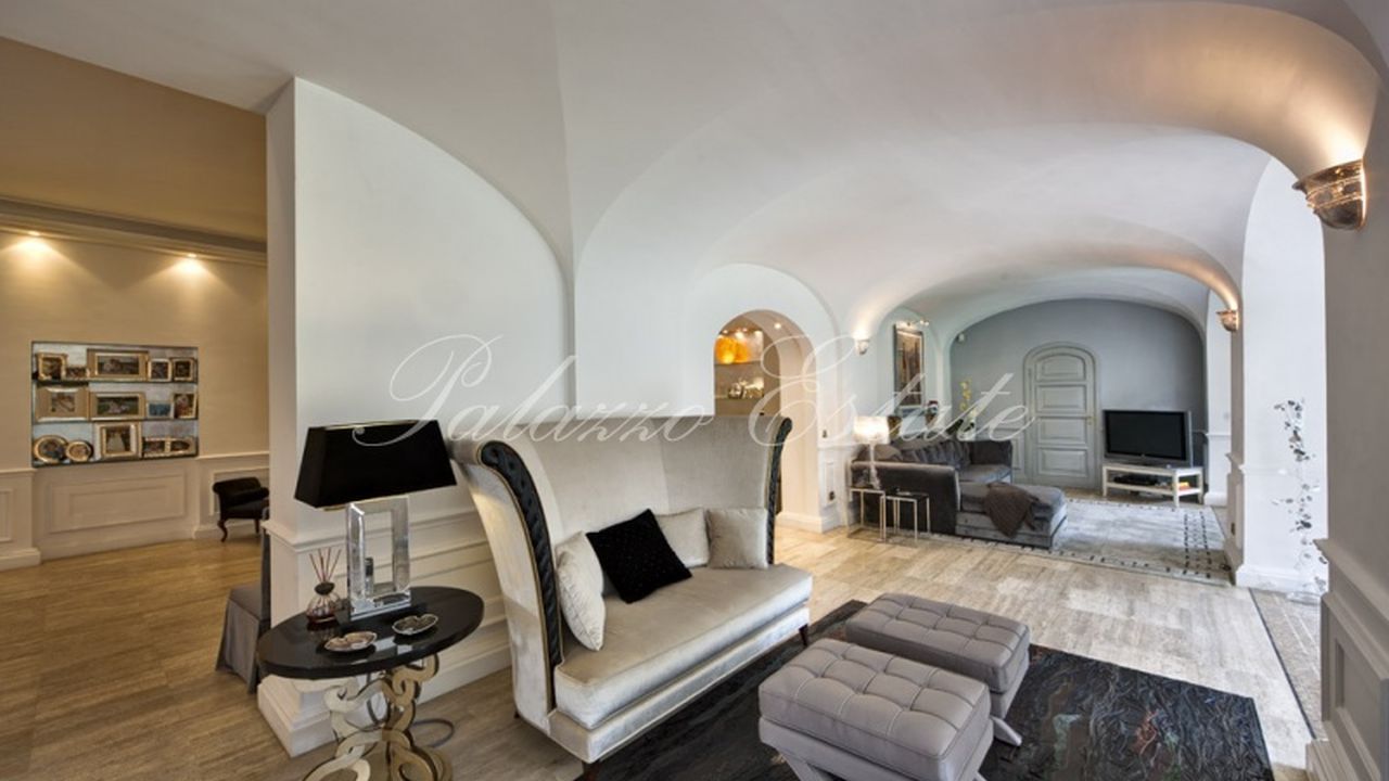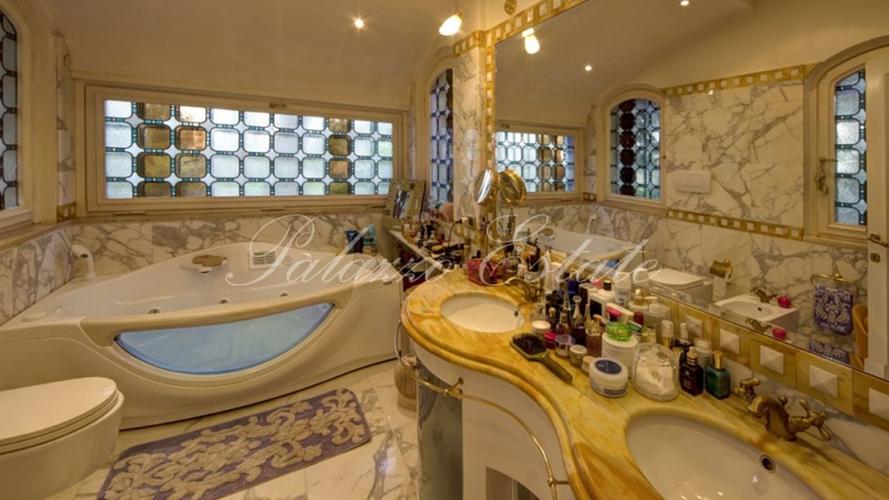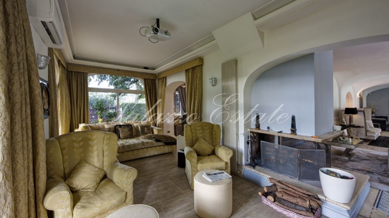 Основная вилла прекрасно отреставрирована и состоит из двух этажей. На первом: прихожая, кабинет, тройная гостиная с огромными окнами-дверьми, выходящими в сад и к бассейну, телевизионный зал, большой обеденный зал, ванная, кухня, подсобные и подвальные помещения. На втором этаже находятся 3 спальные комнаты, одна из которых с террасой 40 кв.м и 4 ванные, большая гардеробная и кладовка. Уровень отделки высокого класса. Зона SPA состоит из: тренажерного зала, сауны, турецкой бани.