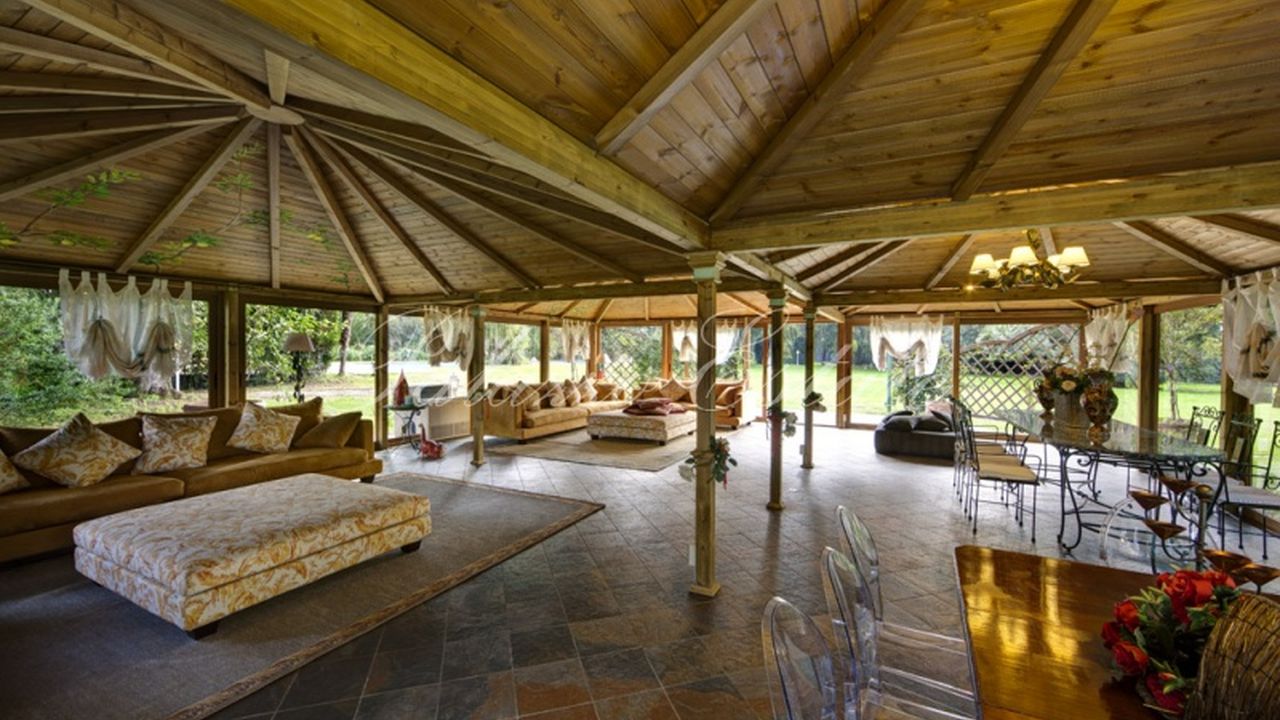 Роскошная недвижимость состоит из основной виллы в 450 кв.м., апартаментов для обслуживающего персонала (65 кв.м), флигеля под офис, большой беседки (126кв.м) для приемов на открытом воздухе, небольшого домика 78 кв.м с зоной спа, спальней и санузлом.