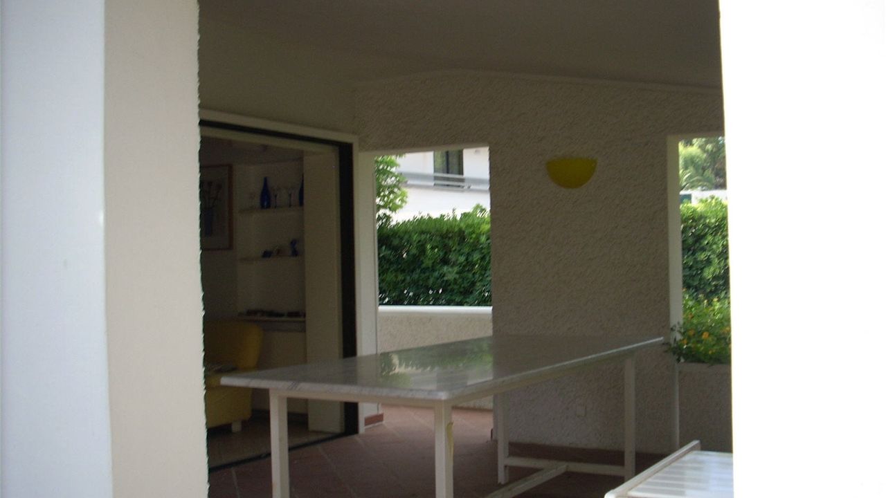 Апартаменты на втором этаже состоят из большой гостиной с полностью застекленной фасадной стеной со стеклянной дверью-купе, выходящей на крытую террасу где расположен большой обеденный стол. Рядом расположена открытая терраса с зоной, предназначенной для принятия солнечных ванн.