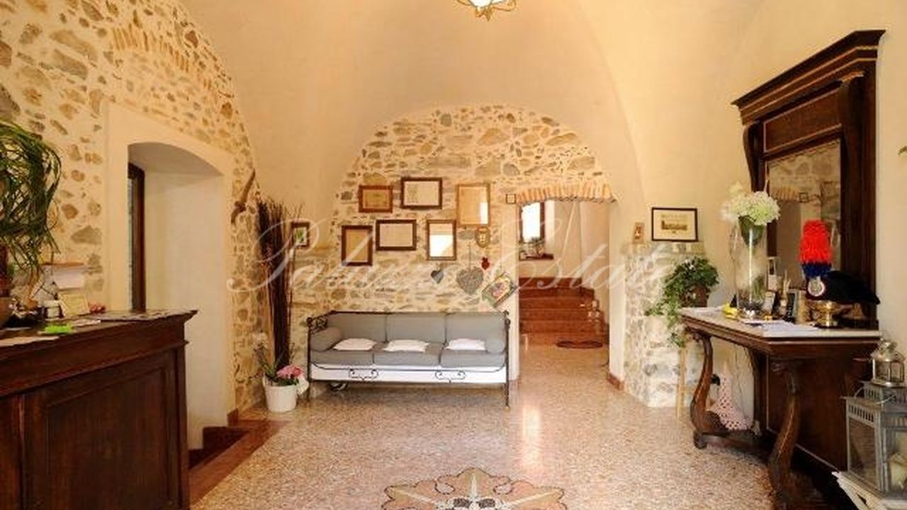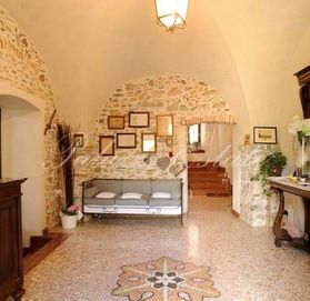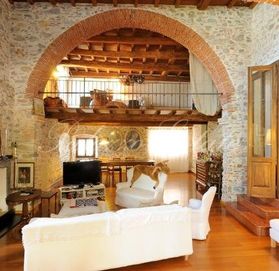 Гостиная выполнена в камне, потолок сделан сводом. Внутренняя отделка виллы выполнена в элегантном стиле и создает атмосферу, которая дарит Вам абсолютный комфорт.