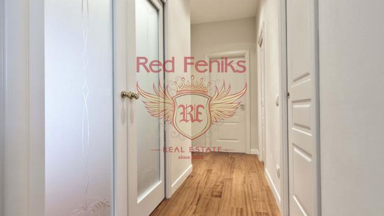 Апартаменты состоят из прихожей, гостиной, изолированной кухни, двух больших спален, двух ванных комнат, в одной из которых установлено джакузи.