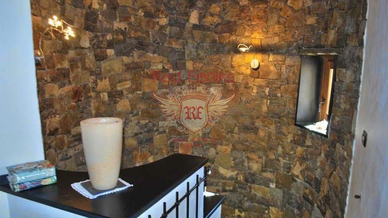 Второй: главная спальня с красивым деревянным потолком с балками, комната с выходом на периметральную террасу, ванная.