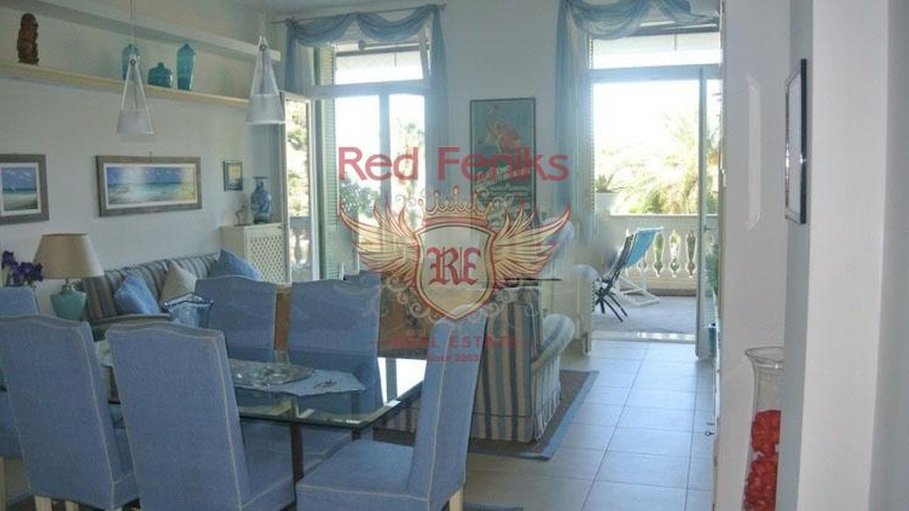 В нескольких метрах от моря и недалеко от центра города Бордигера, выставлена на продажу, полностью меблированная, элитная квартира, площадью 120 м2, состоящая из кухни-гостиной, коридора, 2-х спальных комнат, 2-х ванных и 2-х террас, с одной из которых открывается потрясающий вид на море и сад. Все отделочный работы, в квартире, были проведены профессиональными итальянскими дизайнерами, с использованием исключительно высококачественных материалов. Гараж