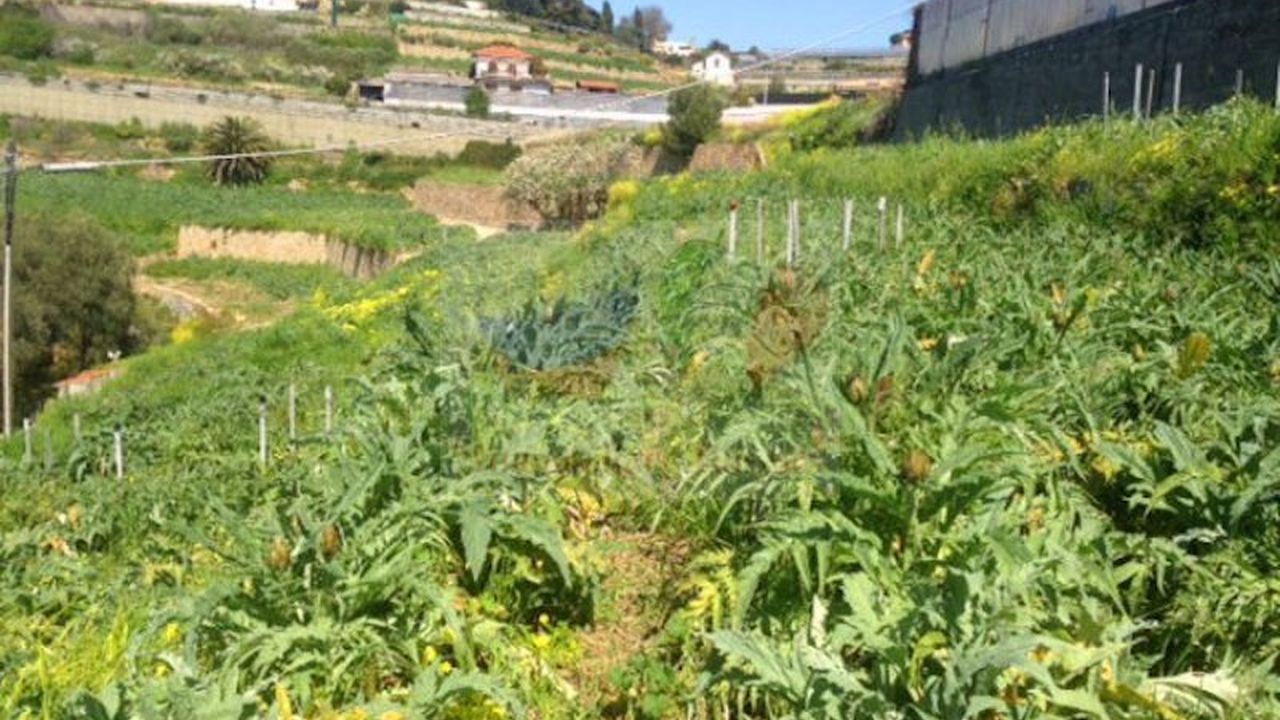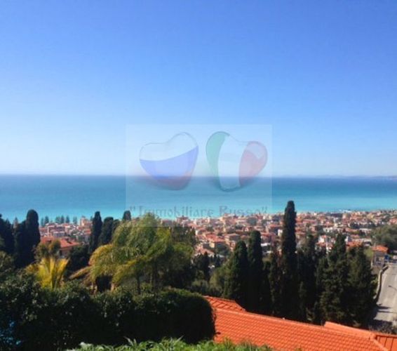 Земельный участок в Бордигере, Лигурии, Италии с панорамным видом на море и большой территорией. Участок разделен на зону для дома и зону для постройки сада, бассейна, парка, тенисного корта или вертолетной площадки.