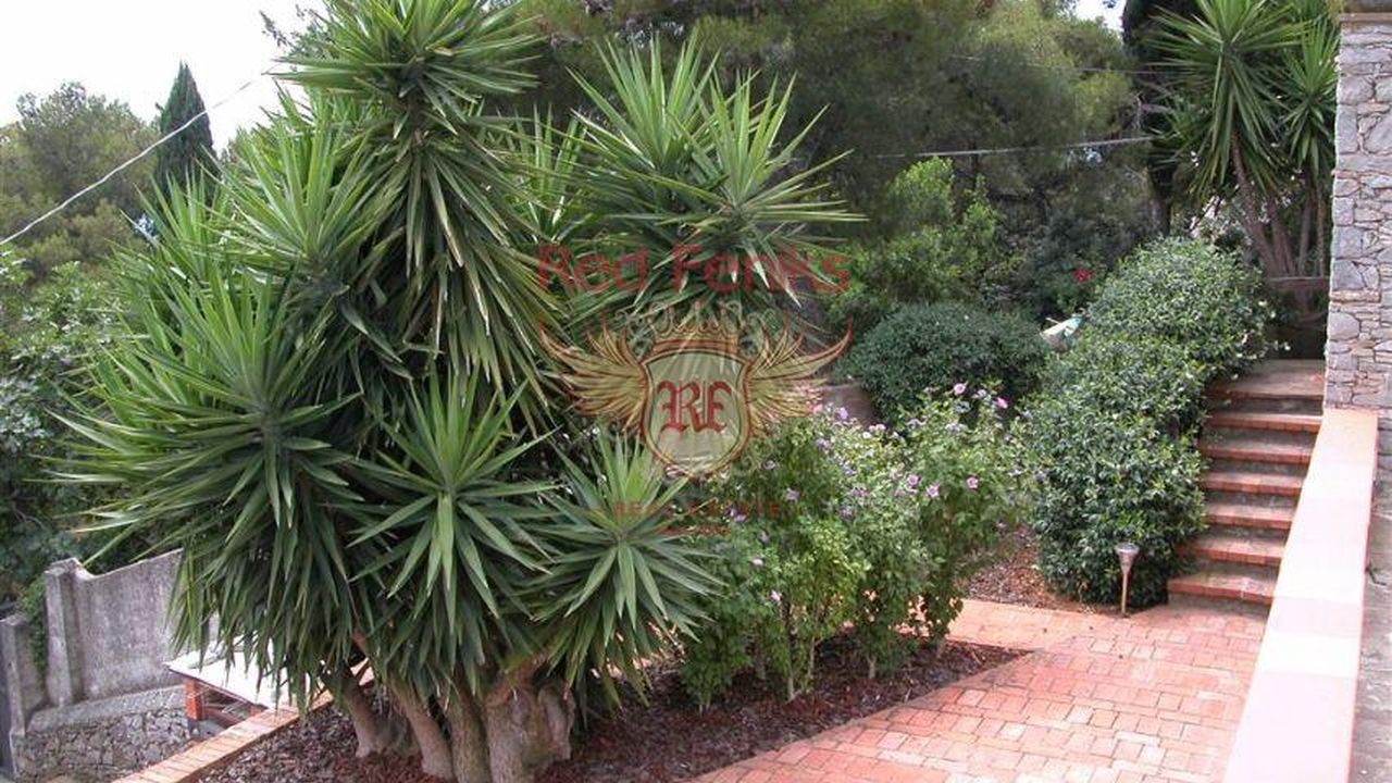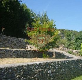 Вилла основная в 160квм + прилегающая депенданс в 70квм Вилла основная - портик-патио, салон большой с камином и кухней, кладовая, кабинет, спальня и ванная. На 2м этаже спальня большая с ванной ensuite Депенданс - салон-кухня, спальня и ванная Цокольный этаж - кантина Сад на уровнях 5000квм - частью газон. часть фруктовые деревья и оливы и часть лесные деревья.