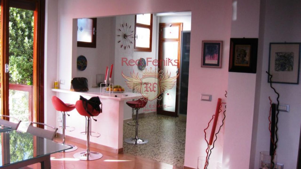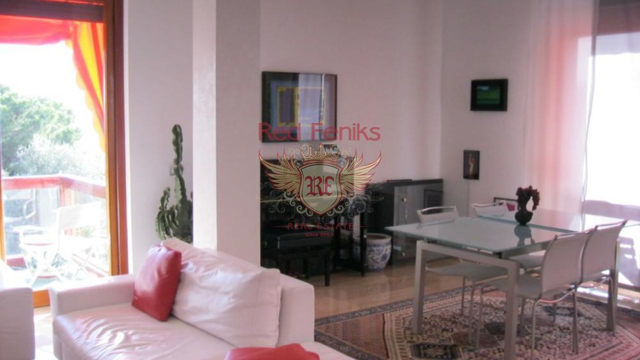 Апартаменты расположены в центре города и в 800 м от моря, то есть минут 8 ходьбы. Прихожая, гостиная, изолированная кухня, 3 спальни, 2 ванных комнаты (одна с гидромассажной ванной), 3 маленькие террасы, балкон площадью 20 кв.м, кладовая. Гараж на одну машину. На входе дежурит консьерж. Продается вместе с дорогой мебелью. Торг.