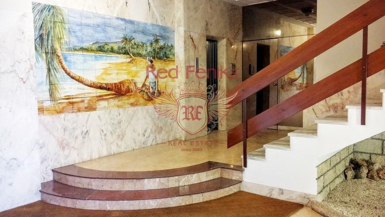 Квартира находится на втором этаже и состоит из: прихожей, гостиной с кухней по американскому типу, двух спален, ванной комнаты и кладовой. Есть служебный балкон и терраса. Состояние квартиры хорошее, недавно произведена замена окон на стеклопакеты. Полы - отличный мрамор и качественная керамика.