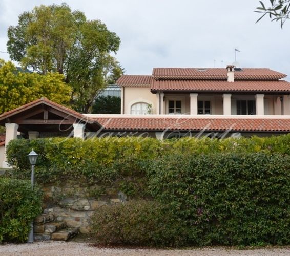 Престижная вилла на панорамных холмах города Сан Ремо, в 2 км от моря с прекрасным видом на побережье города. В соответствии с архитектурным Провинциальным стилем владения, тщательно подобраны отделочные материалы и цветовые тона интерьера, использованы керамическая плитка нежных цветов, плитка ""котто"" светлых тонов и деревянные старинные двери и окна ручного производства, а также вырезанные в камне раковины и прочее.