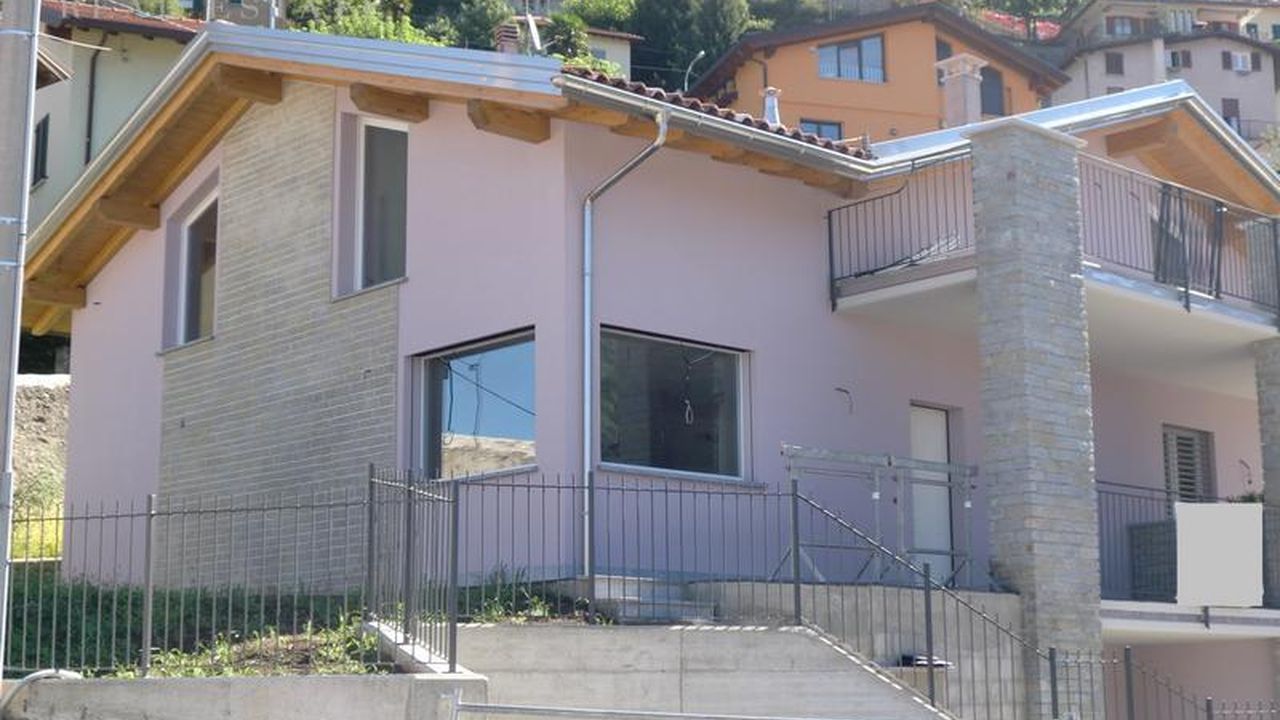 Вилла на две семьи в Беллано. Цокольный этаж: гараж, прачечная, котельная. Первый этаж: кухня, гостиная, спальня, ванная комната, веранда. Второй этаж: 2 спальни, 1 ванная комната, кладовая. С видом на озеро. Частный сад.