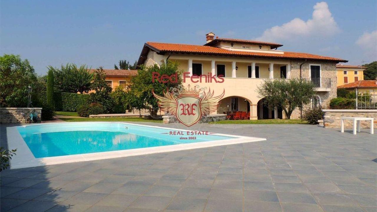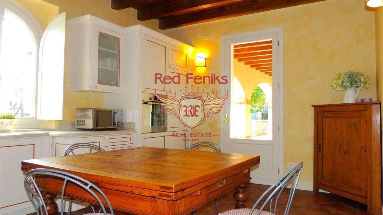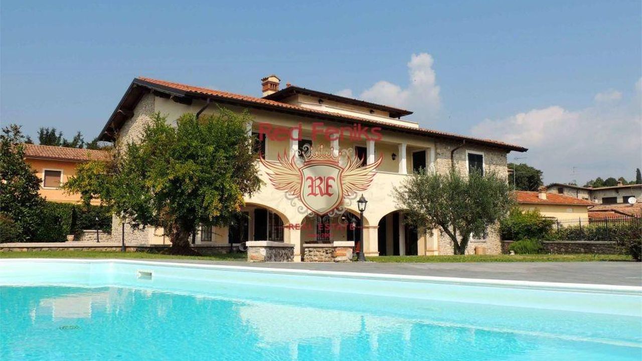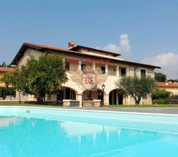 Г. Сояно дель Гарда, ЦЕНТРАЛЬНОЕ РАСПОЛОЖЕНИЕ УДОБНОЕ К ИНФРАСТРУКТУРЕ, ЧАСТНАЯ ВИЛЛА В СТИЛЕ “ФАЗЕНДЫ” С САДОМ И БАССЕЙНОМ, ПОСТРОЕННАЯ ИЗ НАТУРАЛЬНОГО КАМНЯ И ДРУГИХ ДОРОГИХ ОТДЕЛОЧНЫХ МАТЕРИАЛОВ (МРАМОР И ПАРКЕТ). Вилла имеет следующую планировку: на первом этаже находится прихожая, просторная гостиная с камином и столовой, откуда моно выйти на крытую террасу (40 кв.м.) с видом на бассейн и сад. Отдельная кухня имеет продумманый стиль и выход на террасу. Также на первом этаже расположена ванная, отделанная из розового мрамора Вероны. На втором этаже - коридор и три просторные спальни, одна из которых главная и имеет гардеробную. Также есть подсобное помещение и ванная с джакузи, отделанная из мрамора, с выходом на балкон и на террасу, откуда открывается вид на озеро. Из всех спален есть выход на террасу. Есть вторая ванная комната. На мансардном этаже расположена спальня с выходом на террасу (10 кв.м.). На цокольном этаже виллы расположена прачечная, техническое помещение и выход в гараж, рассчитанный на три машины и имеющий электрические ворота. Установлена система сигнализации, кондиционер, половое отопление, автоматическая система полива. Использовались отделочные материалы самого высокого уровня: мрамор в ванных комнатах, подвисная сантехника, паркет, мансардный потолок. Вилла понравиться клиентам со вкусом, которые ищут красивый дом.