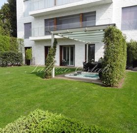 Продаваемые апартаменты находятся на первом этаже и поэтому обладают собственным садом площадью около 400 кв.м., площадь же самих апартаментов составляет 200 кв.м. Они распланированы следующим образом: гостиная со скрытой кухней, основная спальня с санузлом (сауна, гидромассажный душ и турецкая баня), вторая спальня, небольшая спальня/кабинет, санузел с гидромассажной ванной и душевой кабиной, санузел с гидромассажным душем и турецкой баней, гардеробная, кладовая со всей необходимой бытовой техникой, кабинет. Из всех помещений открывается вид на озеро.