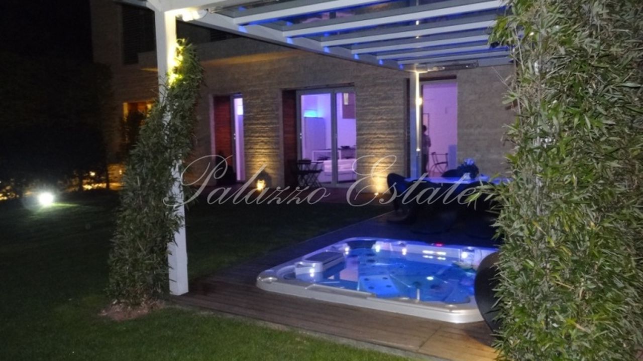 На собственном участке имеется беседка площадью 20 кв.м с гидромассажной ванной, уличным отоплением и звуковой аппаратурой. Два парковочных места в гараже, который соединен лифтом с жилыми этажами здания. Подвальное помещение.