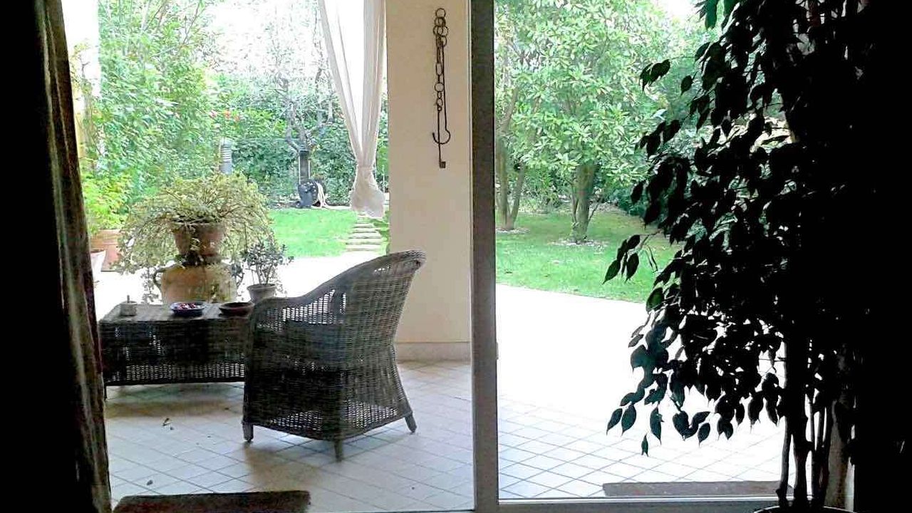 Таунхаус с панорамным остеклением с большой крытой террасой расположен на охраняемой территории с бассейном и собственным садом 100 кв м, в нескольких шагах от главного пляжа города, магазинов, ресторанов.