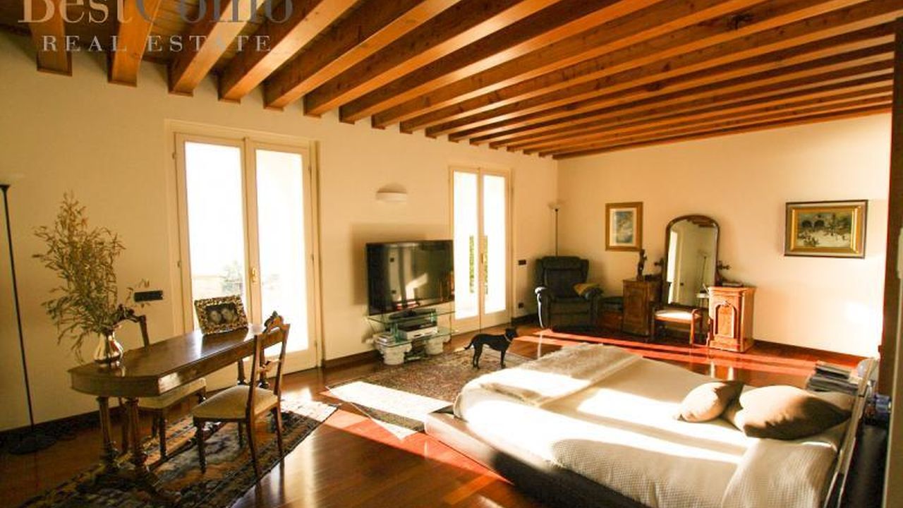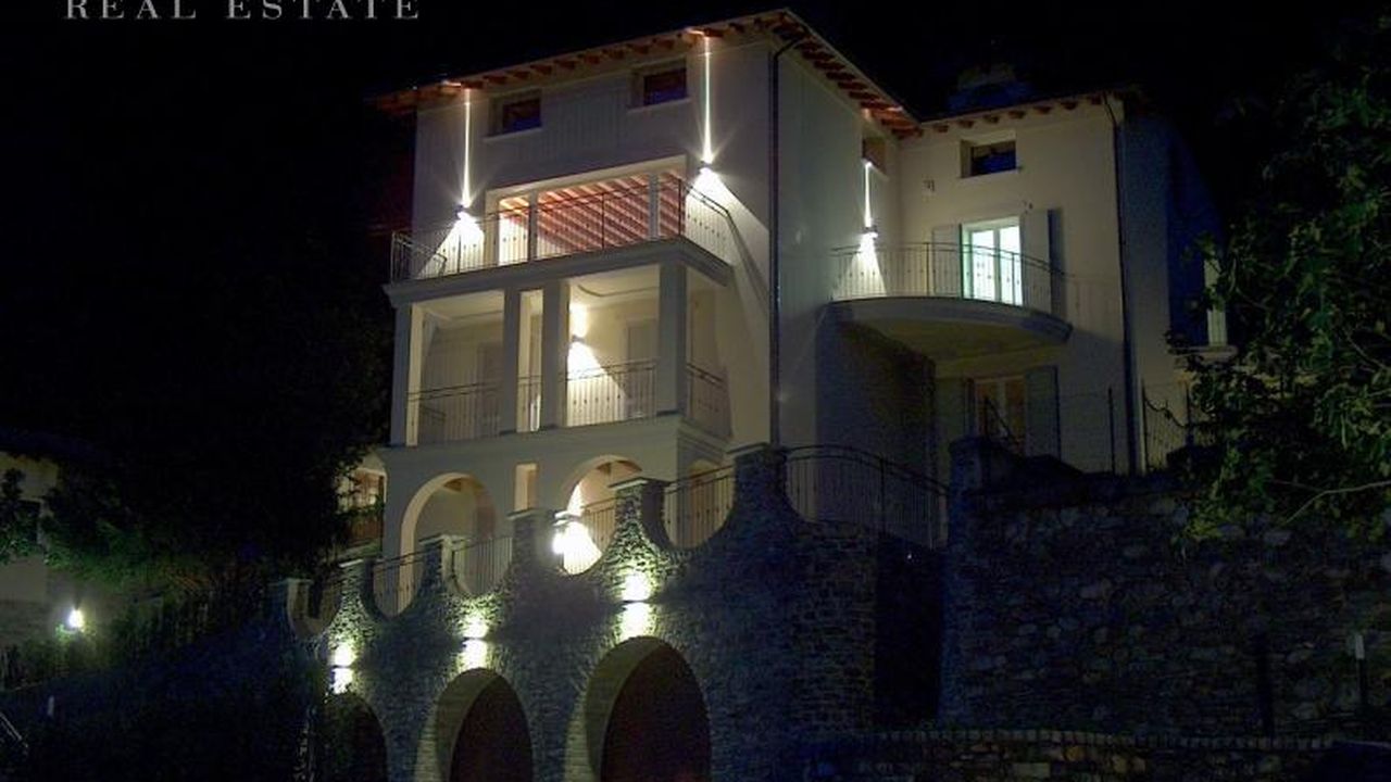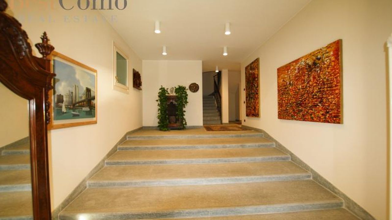 Продается современная вилла с бассейном и большой территорией на озере Комо. Вилла расположена на холме с панорманым видом на озеро Комо, в пешей доступности до центра города и прогулочной дороги вдоль озера, вид по прямой 200 метров до озера. Основная вилла с гаражом, домик для гостей, домик для праздников, бассейн, часовня. 1) основная вилла состоит из: - первый этаж: гараж 110 м.кв. винный погреб, холл с лифтом. - второй этаж: большая хозяйская спальня с сан.узлом (2 умывальника, душ с сауной хамам, ванная с гидромассажем), гардеробная комната, кабинет, прихожая; - третий этаж: 3 большие спальни с 2мя сан.узлами, прихожая; - четвертый этаж: гостиная, столовая, гостевой сан.узел, большая кухня, выход под портик позади дома. Крытый портик расположен позади дома, закрывая таким образом летом от жары, смотрит в лес с дорожками, который принадлежит продавцу. - мансардный этаж: спальня с сан.узлом, большая гостиная и спорт.зал. 2) Домик для гостей состоит из гостиной совмещенной с кухней на первом этаже и спальни с сан.узлом на втором этаже. 3) Отдельностоящий домик для проведения праздников с камином и кухней. 4) Бассейн 10x5 м с раздевалкой. 5) 2000 м.кв. – ухоженный садик идущий террасами. 6) 5000 м.кв. - лес На подъездной к дому дороге есть еще три парковочных места для автомобилей. На въезде часовня.