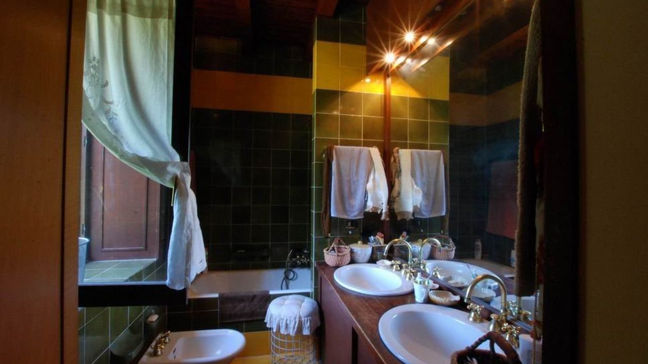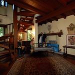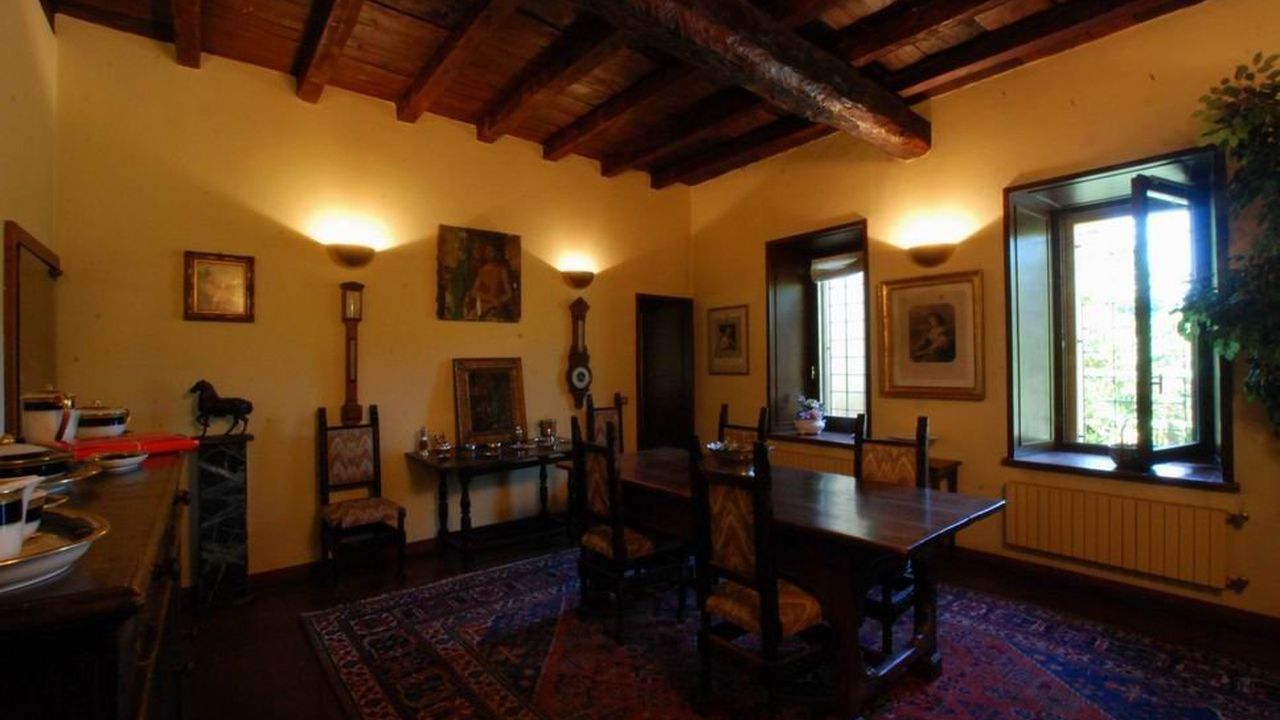 Главный дом имеет два этажа: на первом этаже есть большая гостиная с камином, столовая, кухня с кладовой и зона обслуживания. На этом же уровне находится отдельная квартира для персонала. Первый этаж полностью занят несколькими спальнями и отдельными ванными комнатами. Можно восстановить чердак площадью 240 кв.м. Рядом с виллой расположен бассейн с шезлонгами.