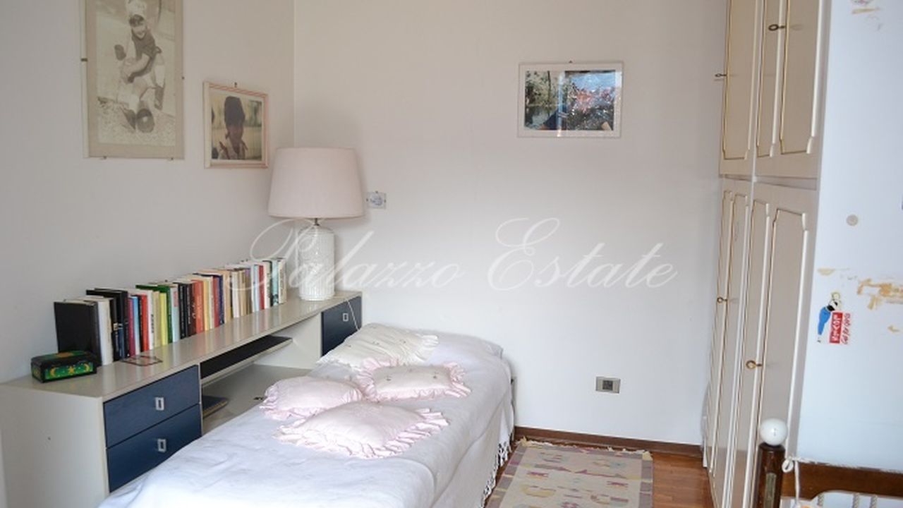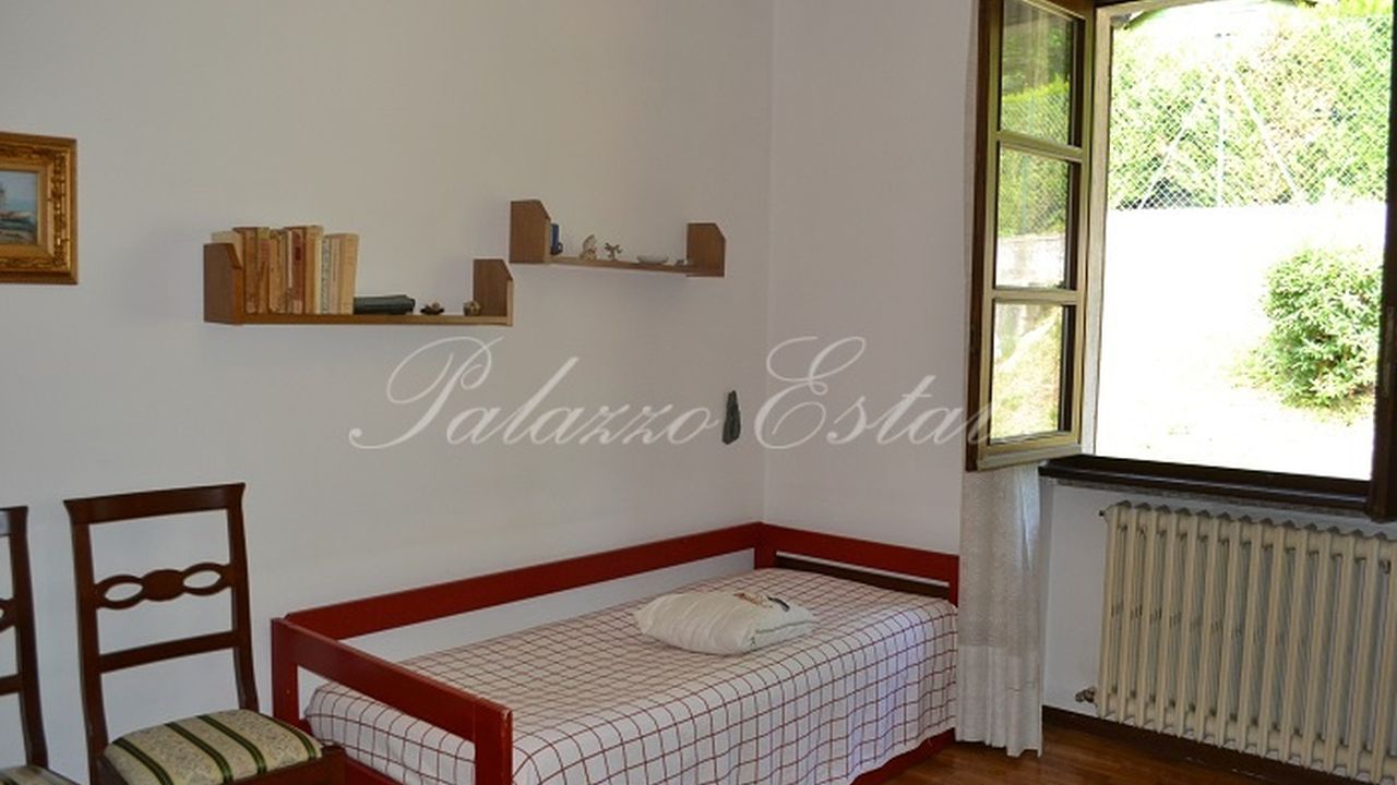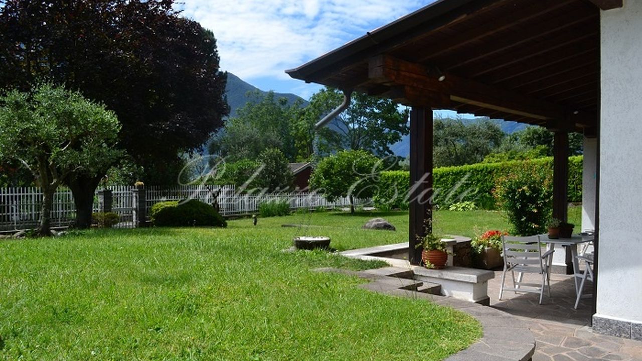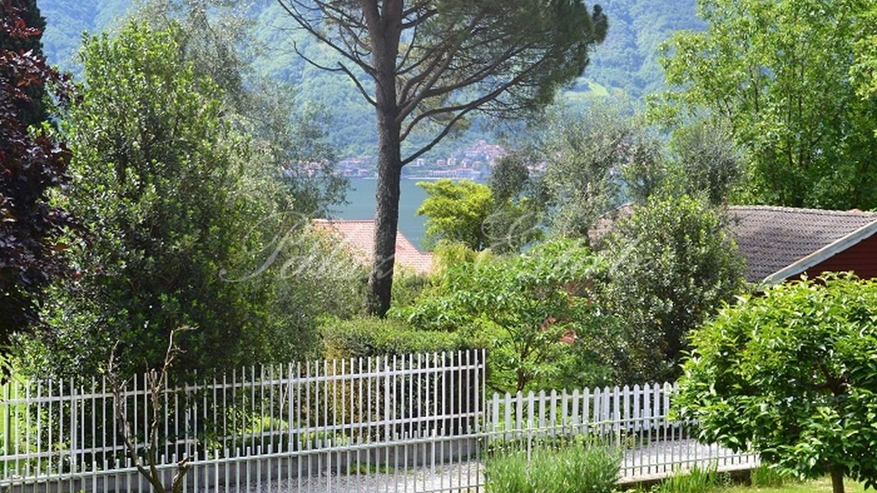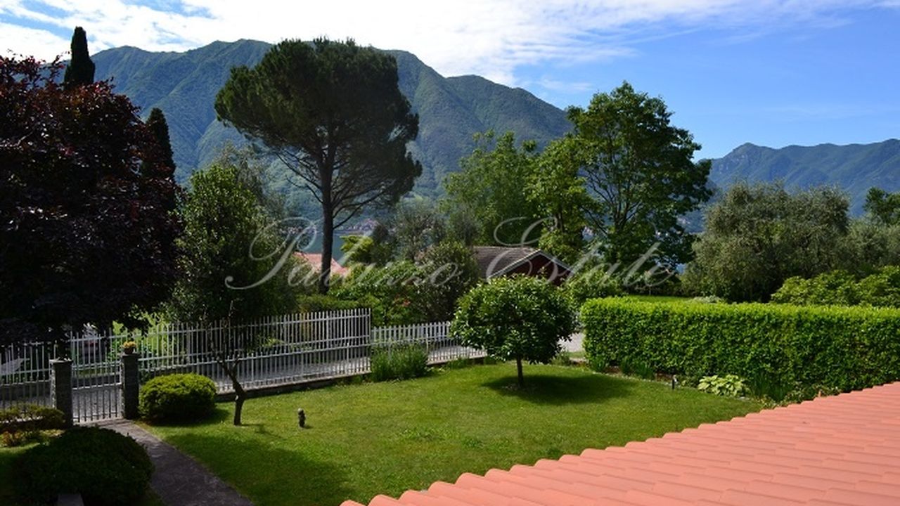 В хорошем жилом районе Ленно, в двух шагах от центра города и от озера на продажу выставлена красивая вилла с участком 800 кв.м. Частичный вид на озеро.