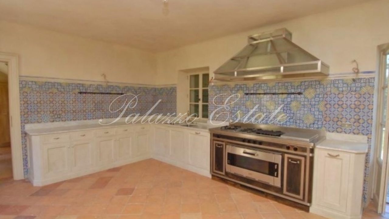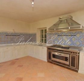 Главная вилла, приблизительно 600 кв м, полностью отреставрирована, подразделена на 2 крыла: в одном расположены 3 гостевые спальни и 3 санузла, в другой 3 спальни, 2 санузла и кабинет. на первом этаже расположены: большая гостиная с камином, библиотека, столовая с камином, гостевой санузел, большая и полностью оборудованная кухня, постирочная и санузел для персонала.