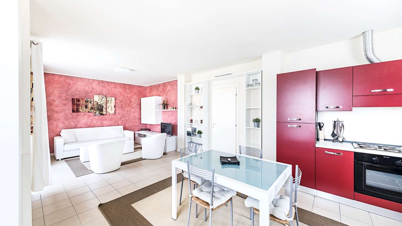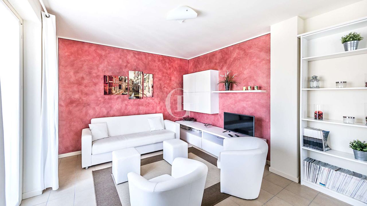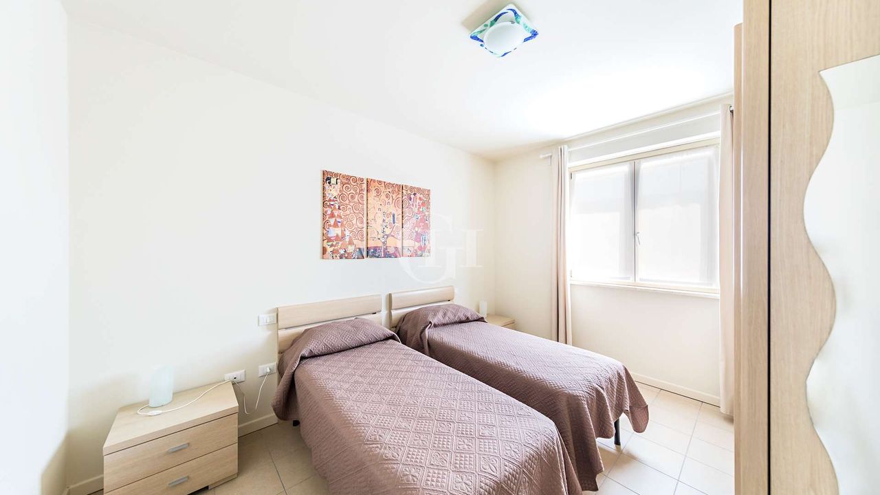 В не так давно построенной элегантной резиденции с бассейном недалеко от озера, мы предлагаем к продаже большую трехкомнатную квартиру на втором этаже.