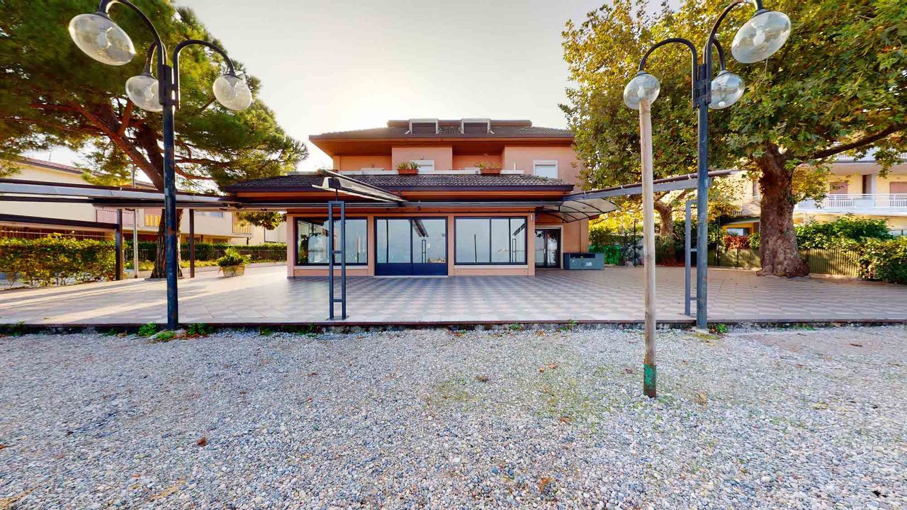 Гостиница, оснащенная большой частной парковкой, расположена на трех этажах следующим образом: на первом этаже площадью около 390 кв. м, холл с ресепшн, зал на около 80 мест, кухня, бар, кладовая, офис, ванные комнаты и терраса с видом на озеро на около 150 мест; на втором этаже площадью около 220 кв. м, 12 двухместных номеров с собственной ванной комнатой, 9 из которых имеют балкон, а 3 - террасу, 3 помещения, используемые как склад/кладовая; на третьем и последнем этаже площадью около 180 кв. м, 8 помещений с ванной комнатой, используемых персоналом обслуживания в качестве жилья.