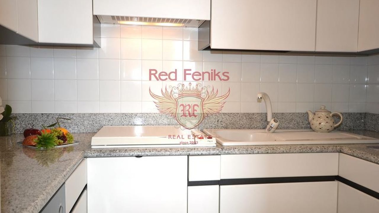 Апартаменты имеют площадь 90 м.кв., расположены на первом этаже и состоят из: просторной гостиной, кухни, большой спальни, ванной комнаты.