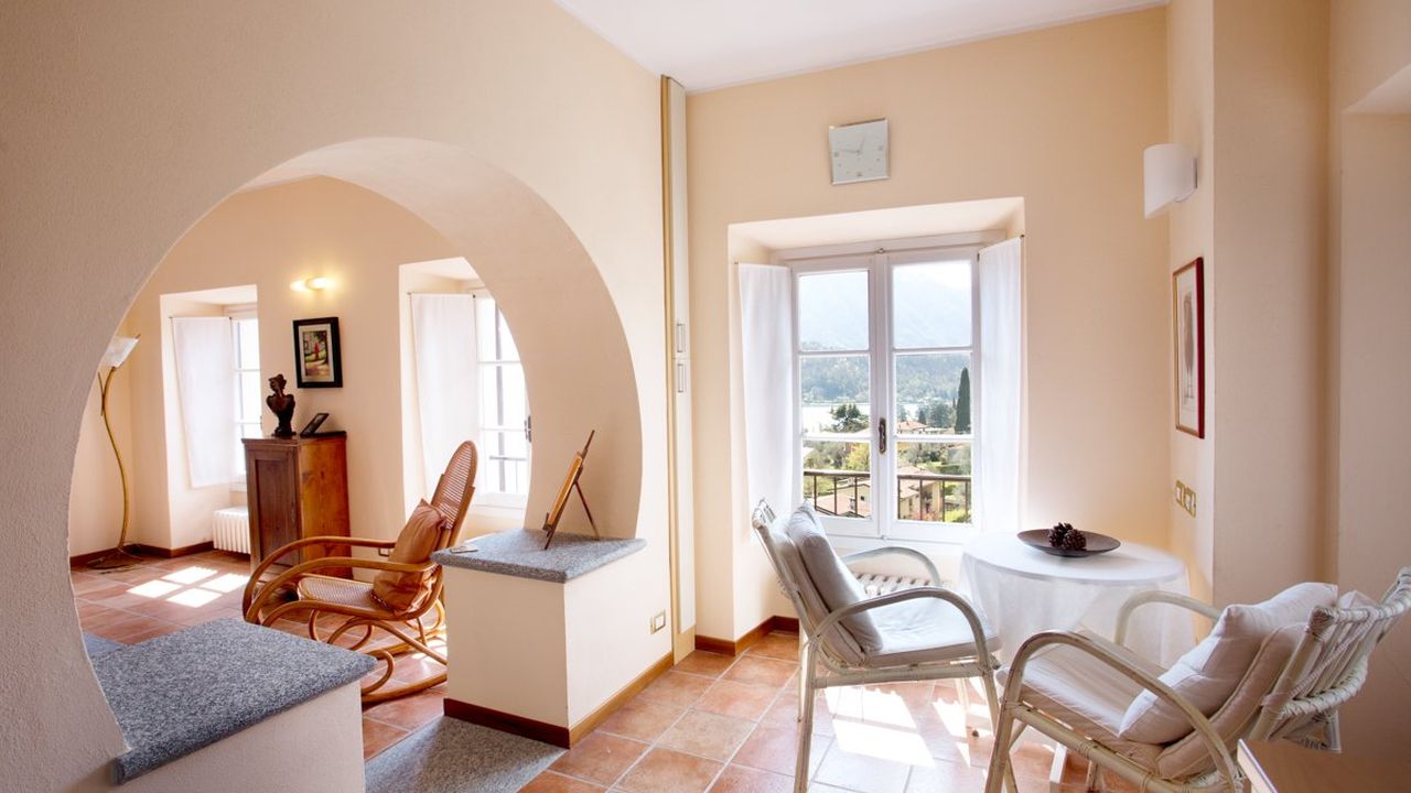 Апартаменты полностью меблированы, площадью 200 м2, с 2 спальными и ванными комнатами, расположены на верхнем этаже, из окон открывается великолепный вид на озеро Комо и горы.