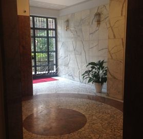 Апартаменты находятся в здании 30-х годов постройки на четвертом этаже с видом на внутренний садик. Включают в себя двойную гостиную с видом на сад, обеденный зал, кухню, прачечную, хозяйскую спальню с гардеробом и ванной, спальню с ванной. Кладовая и гараж.