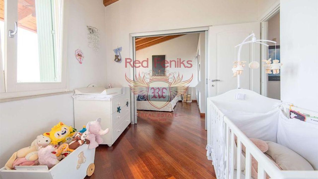 Спаренная вилла в Паденге-Суль-Гарда. 3 этажа, 4 Спальные комнаты, 4 ванные комнаты, 212м2 жилая площадь, вид на озеро. Большой бассейн