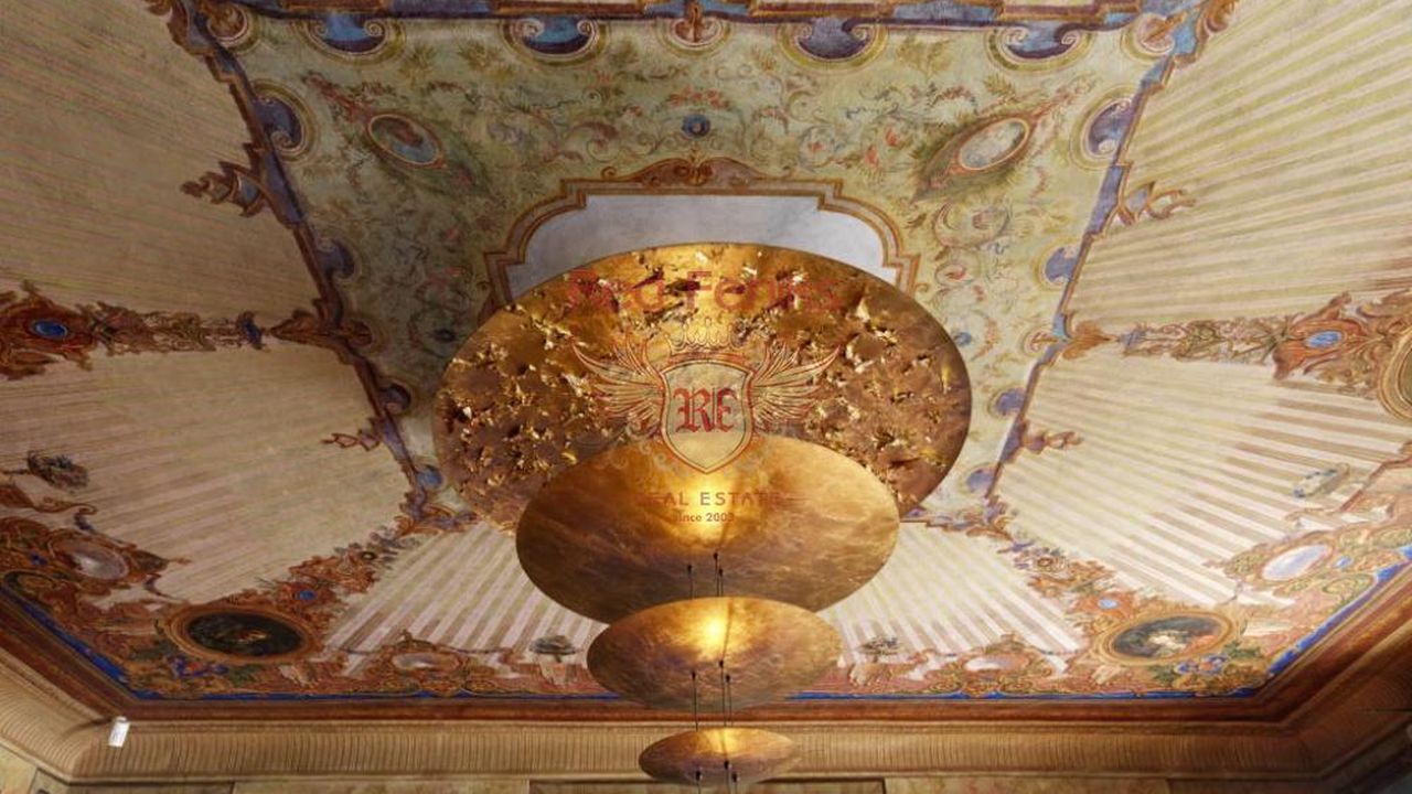 В отделке использованы высококачественные материалы, сохранились расписные потолки, фрески, мраморный камин.
