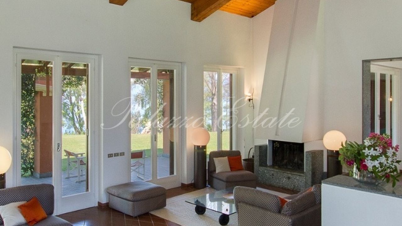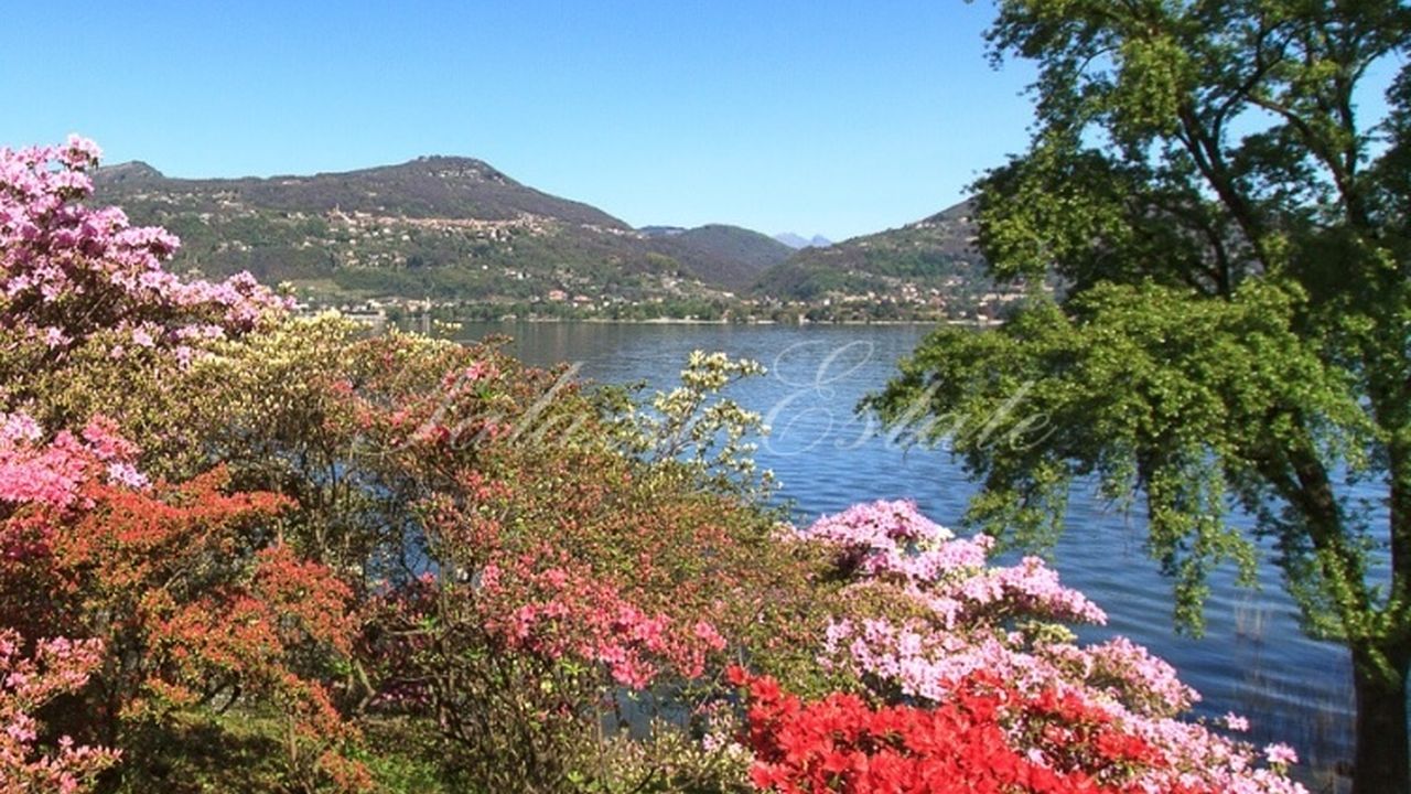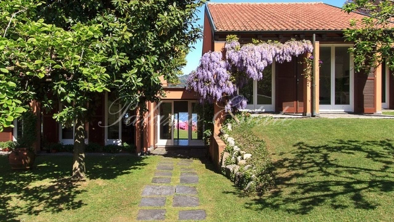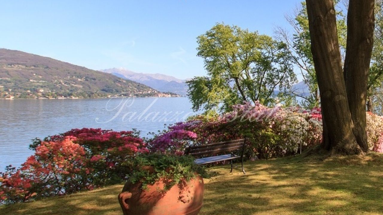 Частная территория дома смотрит прямо на воду озера Маджоре, где есть собственная дарсена. На участке был реализован бассейн и теннисный корт.
