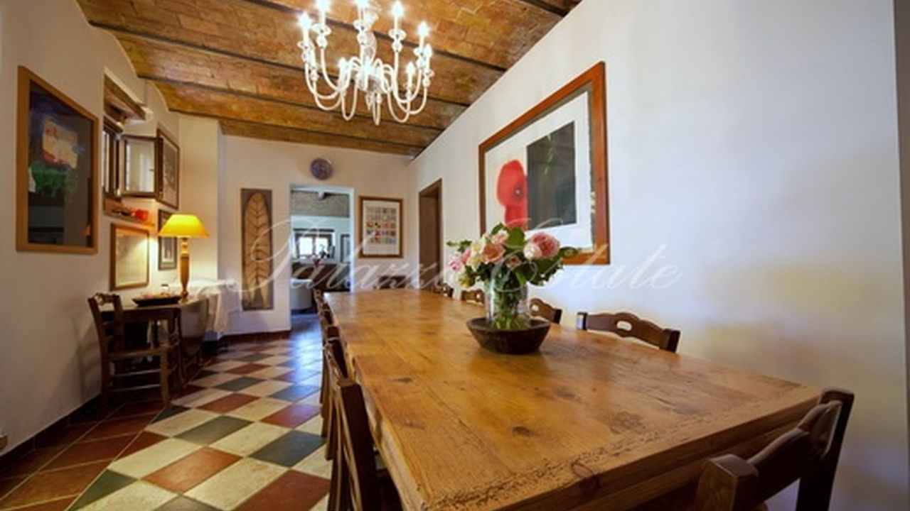 Дом реализован на двух уровнях на общей валовой площади 312 м. кв., к которым прибавляются около 47 м. кв. склада. Собственность дополняется земельным участком площадью примерно 8.000 м. кв. с бассейном и красивой панорамой.
