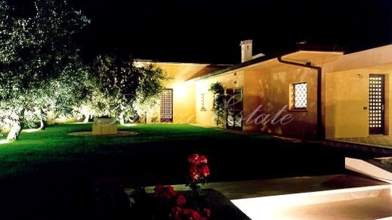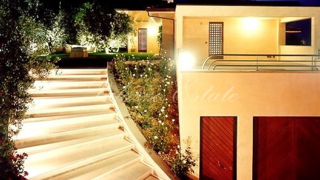 Вилла была построена с большим вниманием к деталям и выбору материалов. Ванные комнаты отделаны мрамором с инкрустацией. Помещения наполнены светом, благодаря большим окнам и мраморным полам, отражающим свет. Вилла окружена садом, площадью более 6000 кв. м. с изумительным видом на море. Газон, оливковые и фруктовые деревья, барбекю, ночное освещение, автоматическая система полива, цистерна для сбора воды, бассейн и барбекю. Всего 200 метров от моря.
