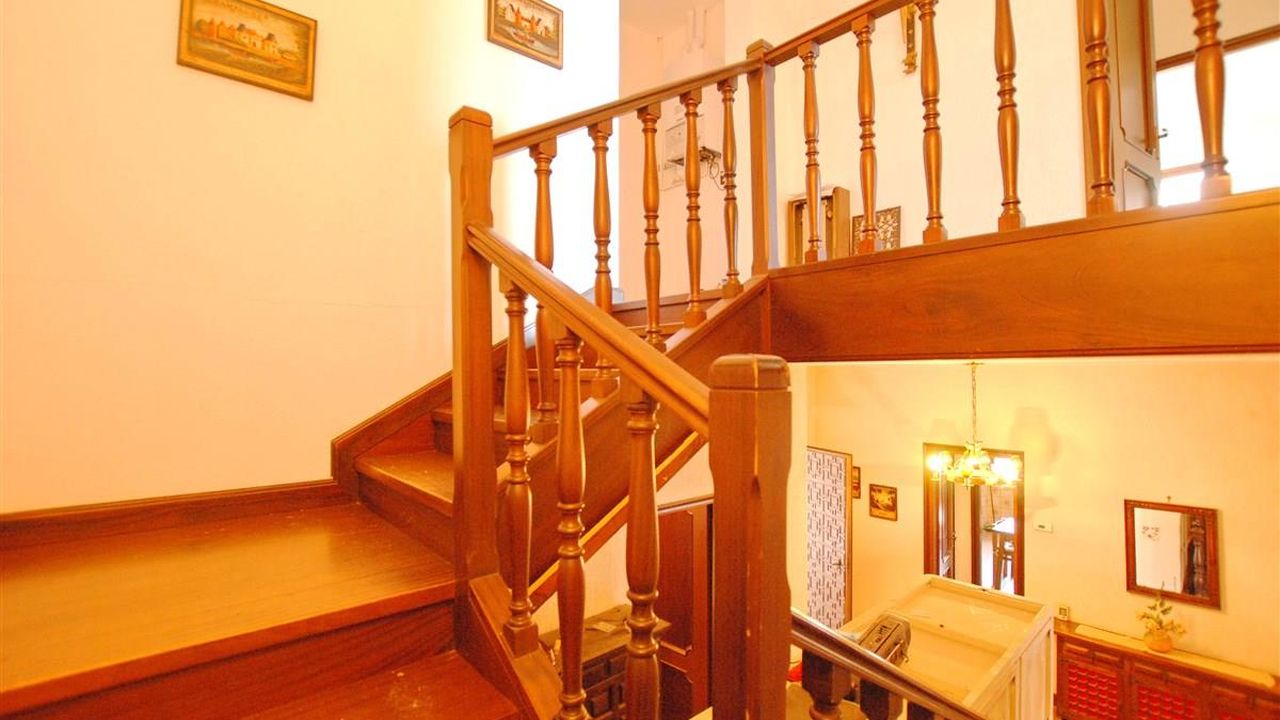 Первый этаж: две гостиные, две жилые кухни, большая столовая зона, две спальные и две ванные комнаты. Второй этаж: 5 спальных и две ванные комнаты, две террасы. В полуподвальном этаже находятся два гаража, два погреба, кладовка, котельная. Большой портик вокруг дома.