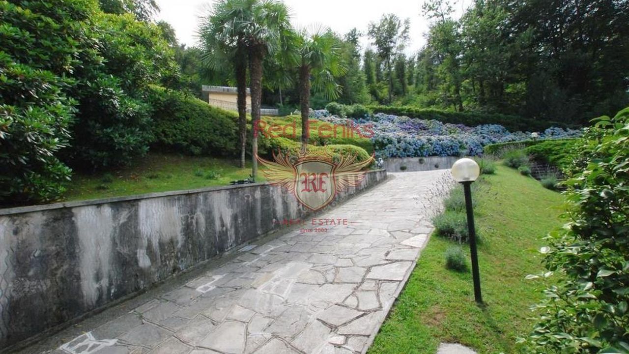 Престижная вилла на холме Стрезы в отличном состоянии. Гостиная с камином, столовая, кухня, гостевая ванная комната. Пять спален, ванная комната, шкаф-купе. Библиотека и ТВ-зал. На цокольном этаже расположена таверна и квартира для сторожа из двух комнат и кухни. Гараж на 4 машины, винный погреб, прачечная и отопительное помещение. Очень хорошо засаженный местными видами растений парк. Возможность строительства бассейна.