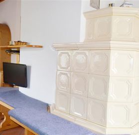 гостинная с печью в автрийском стиле