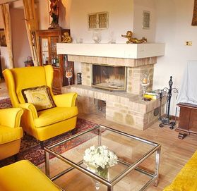 В доме: большая и светлая гостиная с камином, столовая, отдельная кухня, спальня с двуспальной кроватью, ванная комната и подсобное помещение на первом этаже; спальня с двуспальной кроватью, ванная комната на верхнем этаже.
