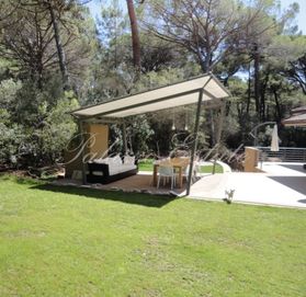 Вилла окружена участком площадью 1500 кв.м с красивой беседкой, шезлонгами, детской площадкой и зоной барбекю.