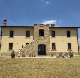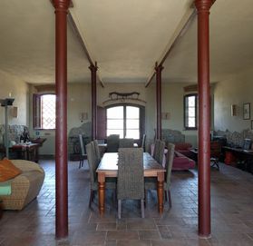 Просторный сельский дом по проекту французского архитектора для состоятельных землевладельцев начала 20 века. Высота потолков до 6 м. Оригинальные чугунные колонны на основном этаже. Великолепная кухня- столовая с панорамным видом на виноградники. Участок 1 га с 77 оливковыми деревьями.