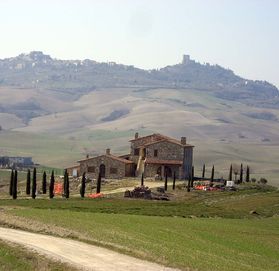 The elevated position offers an amazing 360° view all over the extraordinary landscape. Furthermore, one can barely see the scenery of the picturesque towns Castiglione d’Orcia and Pienza and the imposing Monte Amiata, the highest defuse volcano of Italy. The estate is ideally located and very well linked to the most important city centres of Val d’Orcia which can be reached within a few minutes by car: for example Pienza (approx. 20 km), Montepulciano (approx. 27 km), Montalcino (approx. 20 km). Furthermore, the property is next to some exclusive, internationally well-known thermal spa centres like Bagno Vignoni (approx. 4 km), Bagni San Filippo (approx. 20 km) e Chianciano Terme (approx. 27 km). Approaching from the south, the A1 motorway exit Chiusi - Chianciano Terme is about 31 km away, approaching from the north the A1 motorway exist Firenze Certosa or Chiusi is about 116 km away. The nearest airports are Siena (at 55 km), Perugia (at 113 km), Florence (at 152 km), Pisa (at 214 km), Rome (at 200 km). In about five minutes by car you can reach the nearest local town with all amenities: restaurants, supermarkets, bank, post office, shops and pharmacy.