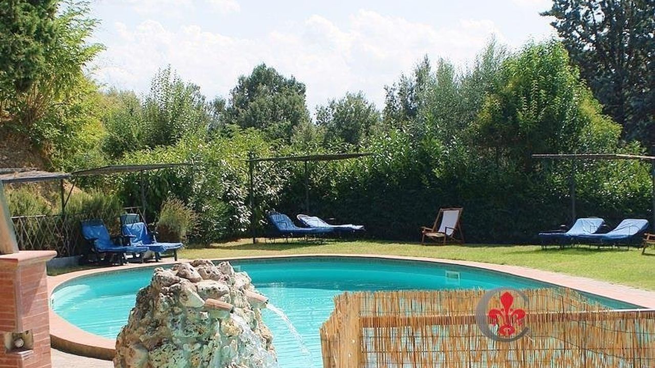 The property, an oasis of peace with a truly enchanting landscape, is surrounded by about 8 hectares of parkland, olive groves and fruit orchards. To complete the property there is the large bean-shaped swimming pool includes 180 m3 of water . IT is covered with a cloth and the technical room is underground. Within walking distance there is the dressing room of 17 square meters with two bathrooms and shower.