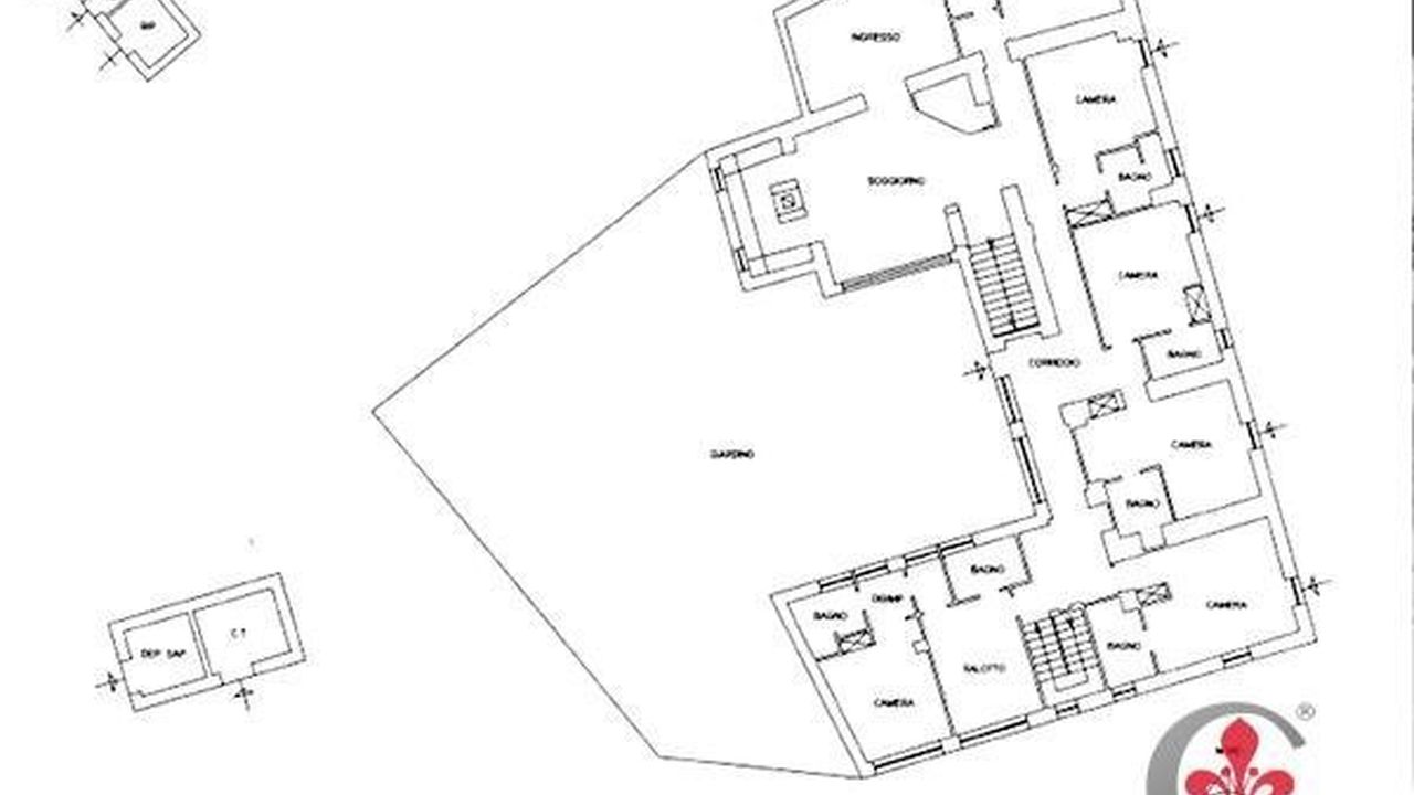 The property has 11 rooms equipped with every comfort and elegantly furnished with bathroom with bath or shower, air conditioning / heating, satellite TV and minibar, plus a suite with Jacuzzi. In general, the structure follows the structural features of the old convent and is on three levels, following also the 'natural lay of the land characterized by terracing. On the first floor of 420 square meters presents the reception with a pleasant living room from where you access to the five bedrooms, the double room and six bedrooms on the upper floor as well as two panoramic terraces and a charming porch. The upper floor of 316 square meters. All rooms have en-suites bathrooms. On the ground floor is another 44 sq.m suites with two rooms, the restaurant and the kitchen of 120 square meters in addition to services and two pantries. The cellars are six for a total of about 91 square meters. Two annexes reside a few meters from the main building. The smallest of about 92 square meters comprising two bedrooms one with a bathroom and a living room with a small kitchen. The other of about 101 square meters includes three bedrooms, two bathrooms and a living room with a small kitchen. The restaurant has 70 seats inside,120 outside seats and ample parking for 70 cars.
