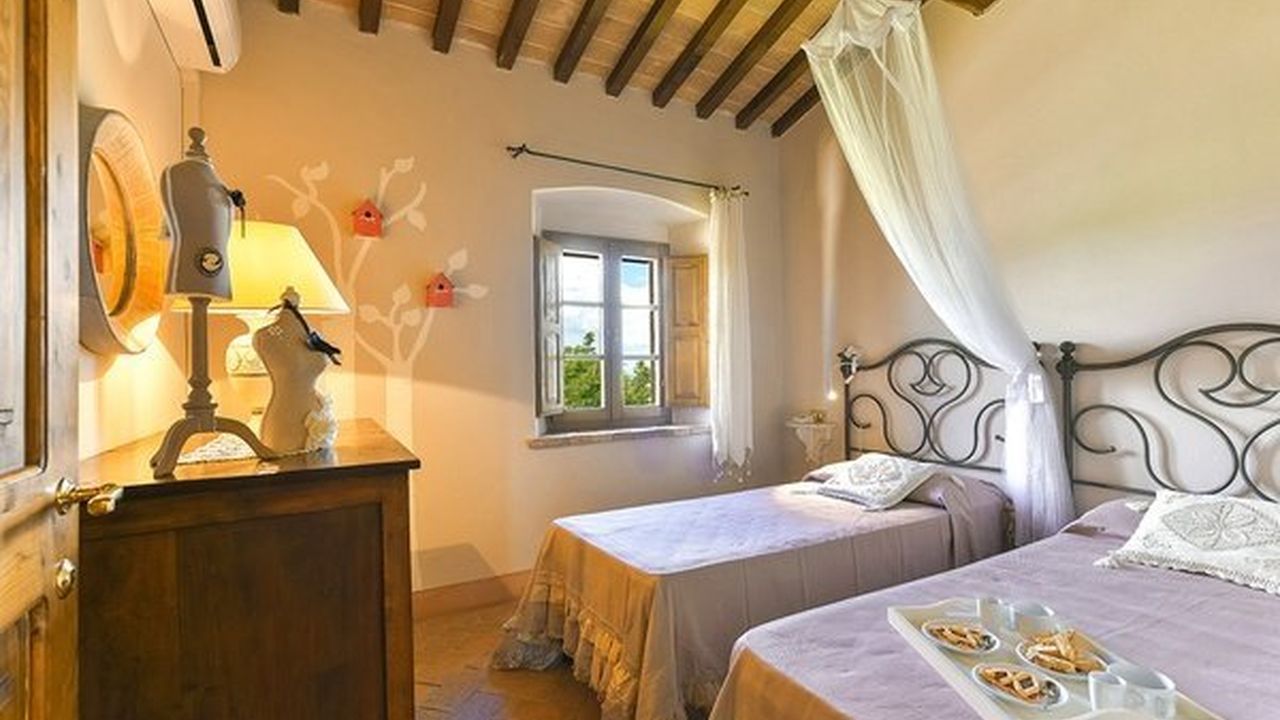 расположенной недалеко от города Вольтерра - очаровательного средневекового городка в самом сердце Тосканы - и всего в 5 минутах ходьбы от театра Silence, естественный амфитеатр, ежегодно принимающий международный музыкальный фестиваль, организованный всемирно известным тенором Андреа Бочелли. Этот красивый дом, находящийся в известном округе Распони-Спинелли, был полностью восстановлен с использованием оригинальных, высококачественных материалов. Окруженная красивым садом (протяженностью около 25,000 кв.м. с газоном, где растут столетние дубы, оливковые и фруктовые деревья), Вилла Эмма оснащена прекрасным бассейном (соленая вода) площадью 12x6м, с красивой беседкой и несколькими террасами, включая террасу для барбекю с обеденным столом на 14 человек. Вилла площадью 700 квадратных метров расположена на 2 этажах. В общем сложности 7 спален, (6 двухместных и 1 twin) и 7 ванных комнат (4 с душем и 3 с ванной). На первом этаже расположена фантастическая веранда с огромными стеклянными стенами, которые делают столовую очень яркой. Столовая соединена с большой гостиной, которая является реальным примером тосканской архитектуры с выложенной кирпичной аркой и камином. Приятный сюрпризом является кухня, которая была недавно отремонтирована в более современном стиле, где современные и традиционные стили смешиваются идеально. На первом этаже кроме гостиной, две спальни и ванная комната. Второй этаж: пять спален, пять ванных комнат и балкон. Также есть квартира с 2 спальнями и кухней с отдельной входом для обслуживающего персонала.Пристройка: Рядом с домом есть независимая пристройка с кухней, дровяной печью и обеденным столом на 10 человек (без спален или ванных комнат). Дизайн интерьера уютный и комфортный. Все комнаты оснащены кондиционерами и противомоскитными сетками. Wi-Fi на всей территории виллы и сада. Вилла является идеальным местом для семей или компаний друзей, желающих провести приятный и спокойный отдых, и погрузиться в красоту Тосканы. Имение расположено недалеко от самых красивых городов региона (Сан-Джиминьяно, Флоренция, Сиена, Лукка, Пиза). Оснащена всеми современными удобствами, вилла имеет несколько открытых площадок (подъезды, беседка, веранда), для отдыха или обедов на свежем воздухе, которые подарят наслаждение от любования превосходным видом на окружающий пейзаж. Energy Performance Certificate: G 132,5 кВт-ч / м2 в год.