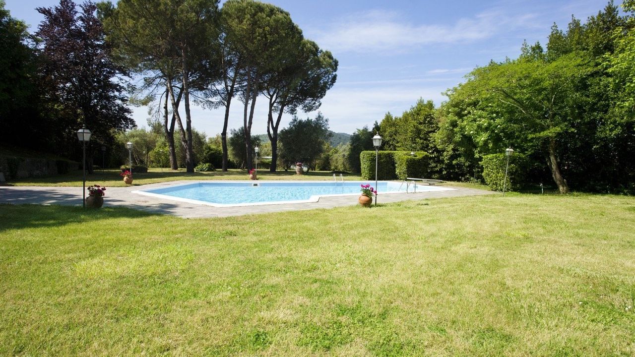 Главная вилла расположена на трех этажах и украшена башней. Кроме нее комплекс включает также маслобойню, которая была переоборудована в залы для приема гостей, несколько отдельно стоящих домиков с оборудованными квартирами, оранжерею и бассейн очень интересной и необычной формы. Завершает комплекс земельный участок площадью 13 га, на которых помимо парка Вы найдете виноградник, оливковую рощу и лес.