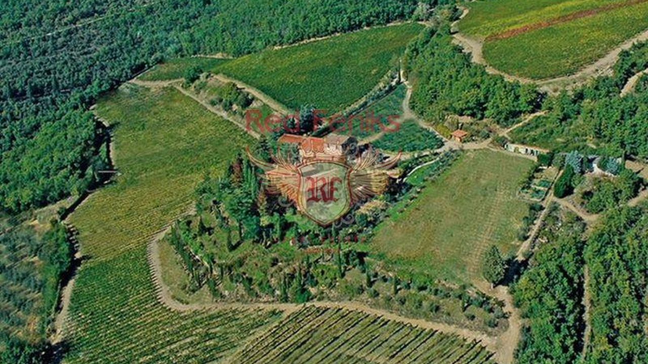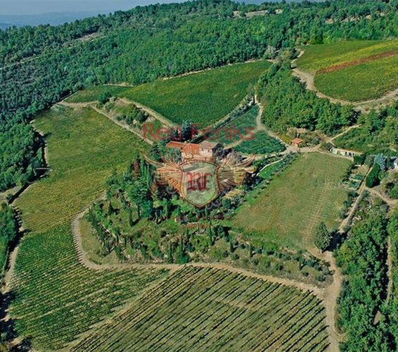 Кьянти. Винодеятельная компания состоит из красивой усадьбы с главной резиденцией и различными пристройками, которые используются как технические помещения так и для хранения. Структура хорошо известна и она славится винами отличного качества. Собственность включает в себя 43 га земли с виноградниками и лесами.
