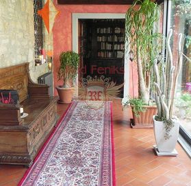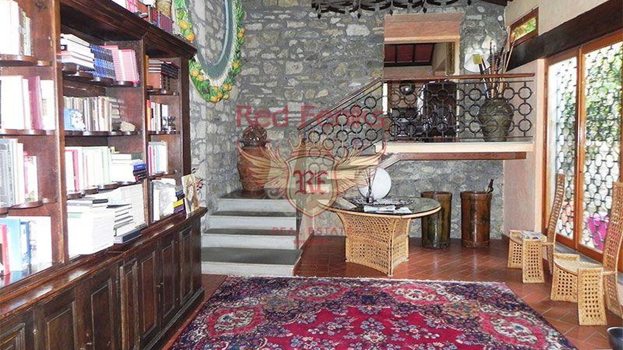 Главный дом имеет площадь 490 кв.м. расположен на нескольких этажах, на первом этаже есть вход с кабинетом, небольшая ванная комната, комната для дегустации и большая кухня с большой дровяной духовкой.