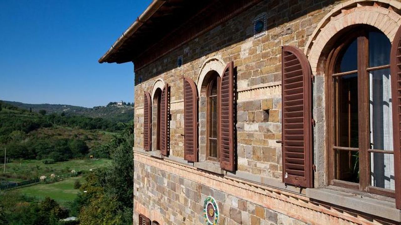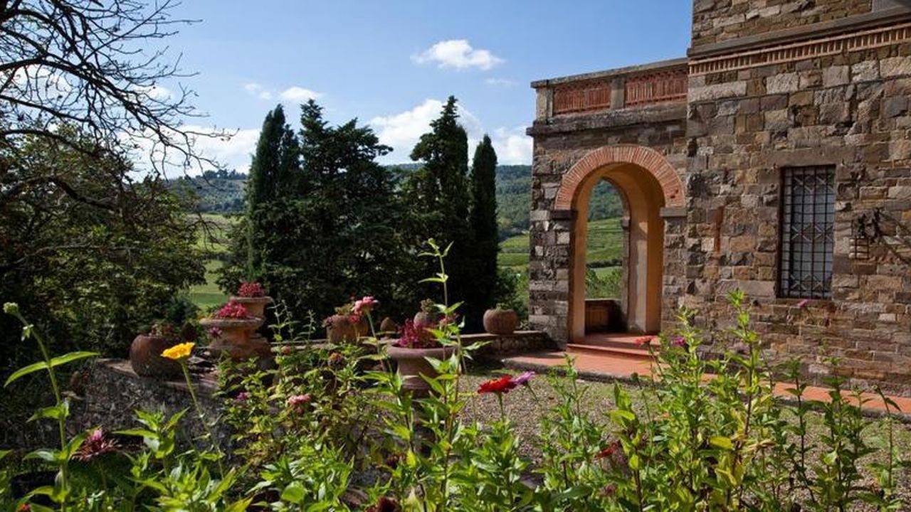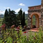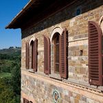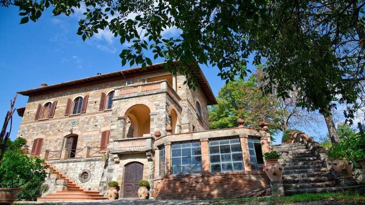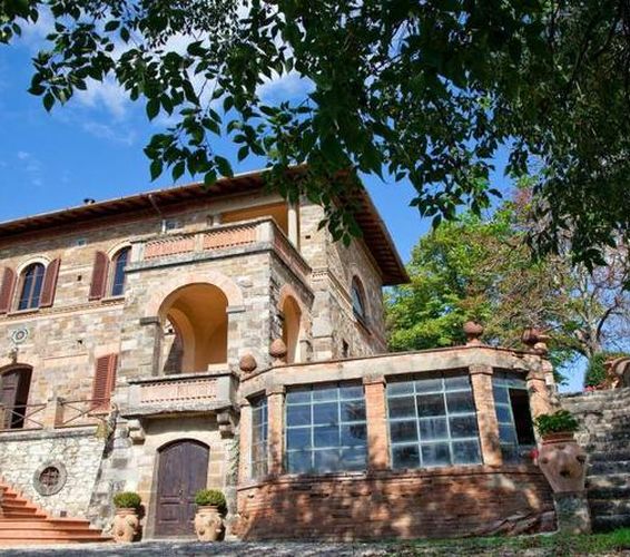 Греве в Кьянти. Продается великолепная вилла, датируемая 1916 г., недалеко от небольшого городка Греве среди знаменитых зеленых долин Кьянти. Это потрясающее роскошное имение расположено на вершине небольшого пологого холма в исключительно панорамном месте, с видом на все окружающие пейзажи. Усадьба занимает около 1300 кв.м. земли с прекрасными цветниками, небольшими лестницами и дорожками. Вдоль главной аллеи высажены кипарисы, а она огорожена высоким чугунным забором. Перед главным входом в дом находится большая веранда из терракоты с восхитительными арками. Здание: Основное здание в поместье ? это элегантная вилла площадью 750 кв.м. с 8 спальнями. Дом состоит из трех этажей (цокольный, первый и второй этажи), включая двое независимых апартаментов с отдельными входами на двух последних уровнях. На цокольном этаже, связанным с первым этажом небольшой внутренней лестницей, расположены несколько погребов с потолочными сводами площадью в общей сложности ок. 48 кв.м., в то время как складские помещения занимают площадь 25 кв.м. Более того, на этом этаже находится довольно большой гараж, одна кухня, гостиная и две спальни. Апартаменты на первом этаже с выходом в частный сад состоят из трех спален, большого коридора, одной большой гостиной, выходящей на красивую светлую террасу из терракоты площадью 40 кв.м., одной ванной комнаты, кладовки и кухни с камином. Планировка апартаментов на втором этаже аналогична первому, но, в дополнение к этому, там имеются еще две студии и прачечная плюс выход на прекрасную лоджию со второй террасой площадью 16 кв.м. Рядом с главным входом виллы имеется застекленная оранжерея площадью 15 кв.м. Пристройки: Имению принадлежат три пристройки, используемые в качестве складов с отдельным входом, а также еще одна лоджия, где имеется печь для пиццы, и маленькая кладовая общей площадью 50 кв.м. Земельный участок: около 5000 кв.м. земли разделены на оливковые рощи и виноградники.