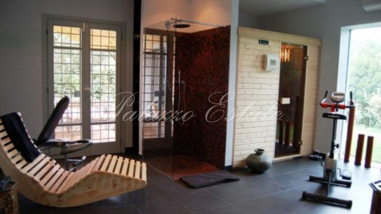 Вилла была выполнена по проектам известного архитектора, который смог её сделать удивительно красивой, функциональной и комфортной. В доме есть крытый бассейн с окнами в пол и выходом в сад. Большая очень светлая гостиная с камином и прямым проходом к бассейну и к зоне отдыха с сауной, душем и спортивным залом. Просторная кухня с барбекю, небольшим камином и выходом на портик, где стоит стол на 8 персон для завтраков на свежем воздухе. Три спальни с гардеробными, 5 санузлов, кабинет и 3 кладовые. Практически все спальни украшены фресками в современном исполнении.