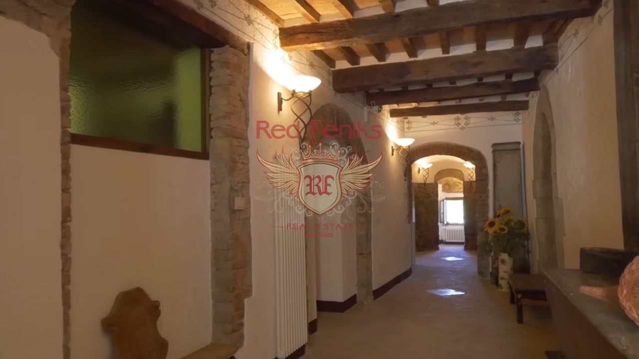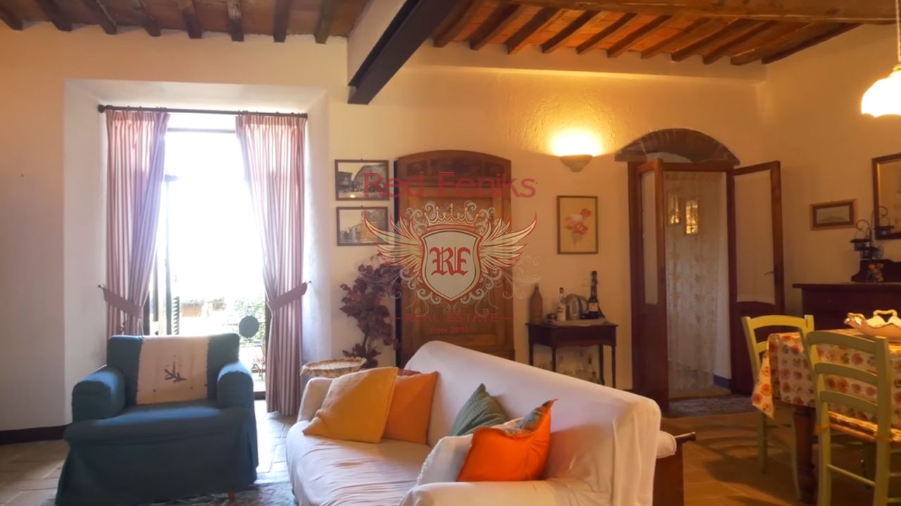 На втором этаже здания потолки сделаны из красного кирпича. Тяжелые вековые балки, которые сопротивлялись износу времени, все еще сохраняют старинный дизайн, а старинные предметы украшают очень простую обстановку. Боьшое окно освещает широкий коридор, который ведет к спальне и ванной комнате. Вниз по лестнице мы приходим в типичную тосканскую кухню с садом.